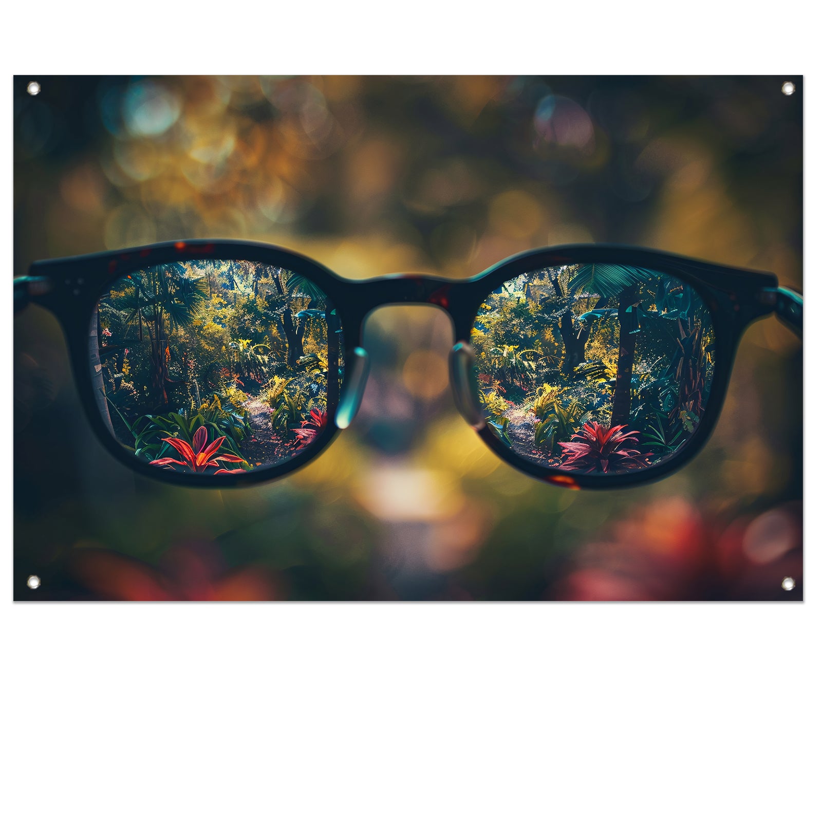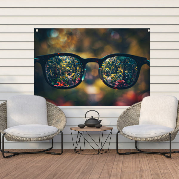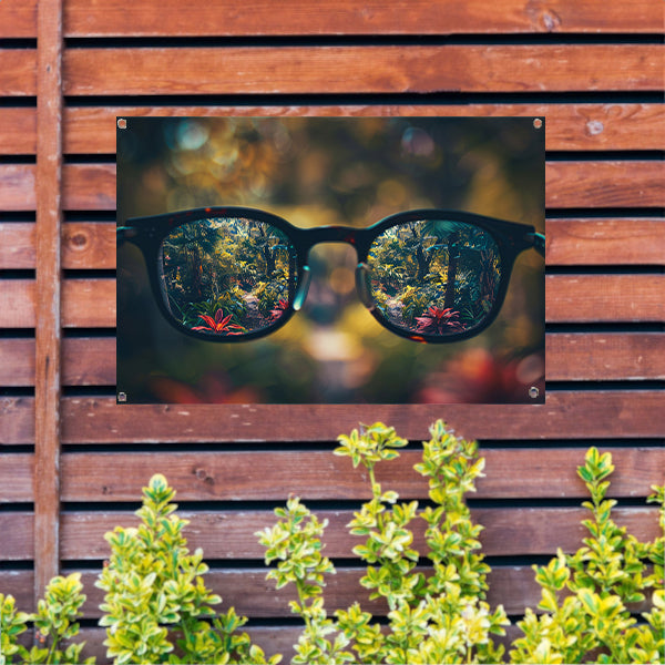 Natuurlandschap gezien door een bril tuinposter