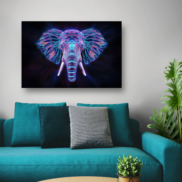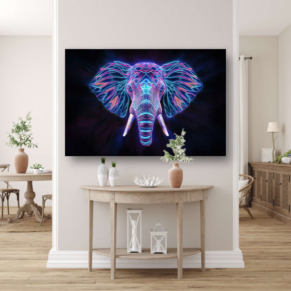 Neon holografische olifant met futuristische kleuren canvas met baklijst