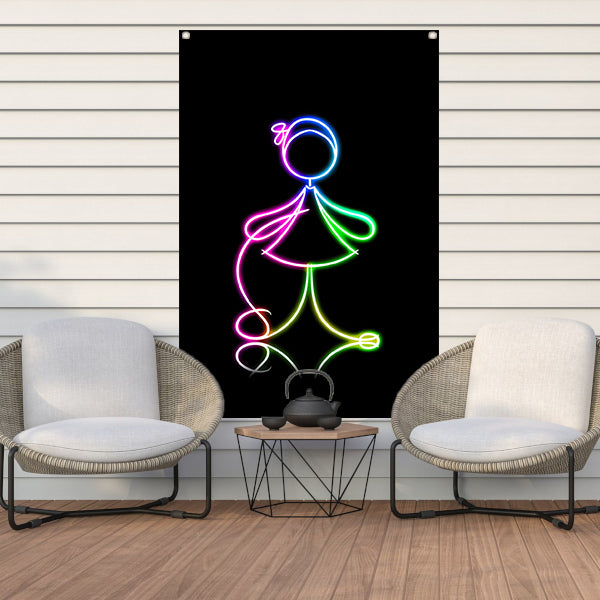 Neon meisje springt touw in het donker tuinposter