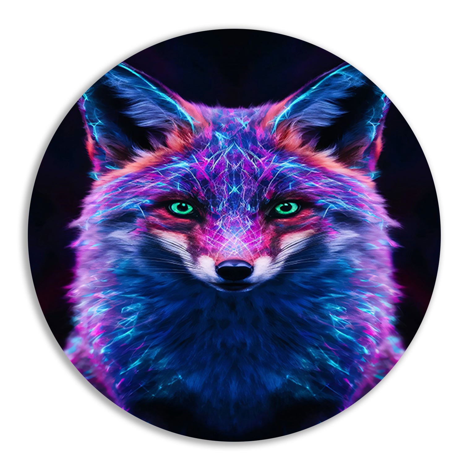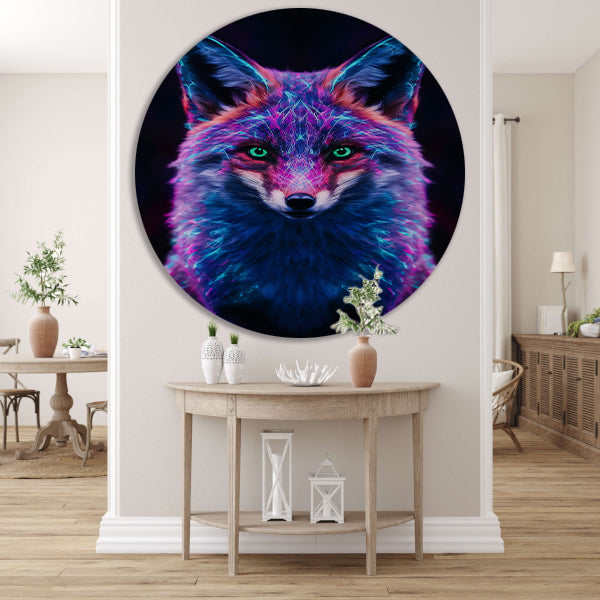 Neon vos kunstwerk met levendige kleuren forex muurcirkel