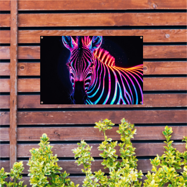 Neon Zebra in Psychedelische Kleuren tuinposter