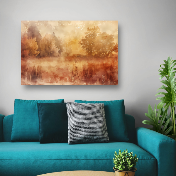Nevelig sepia boslandschap in herfstsfeer canvas met baklijst
