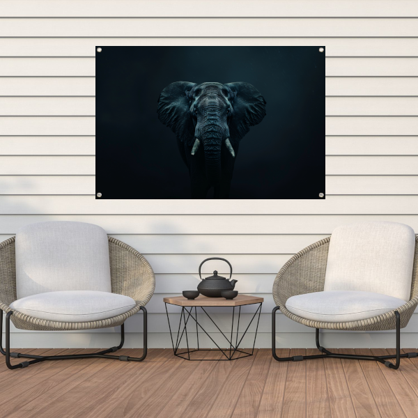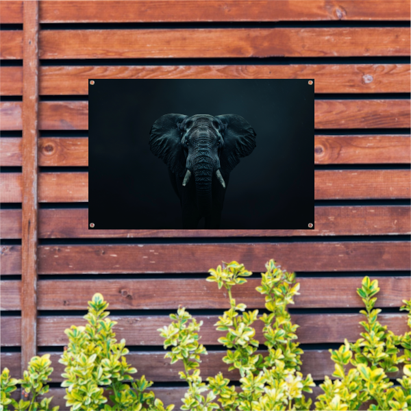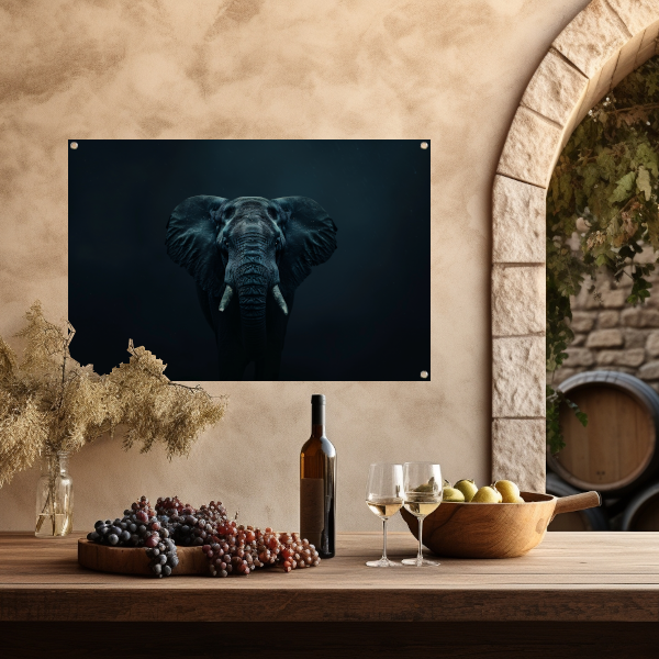 Olifant in het donker met zichtbare schaduwen tuinposter