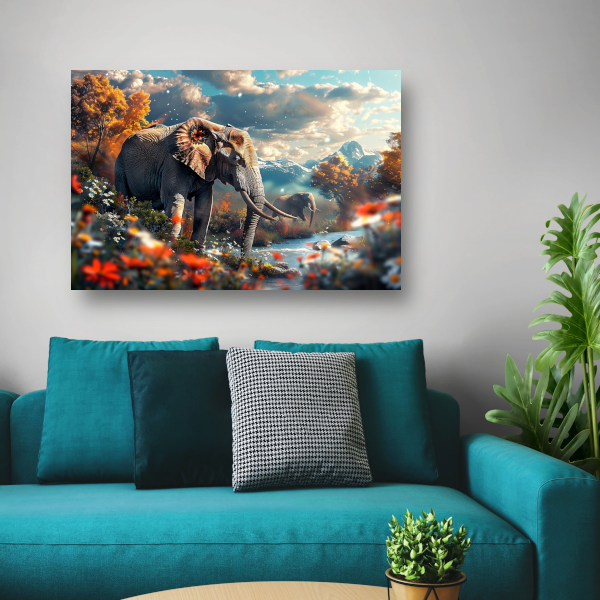Olifanten bij de rivier canvas met baklijst