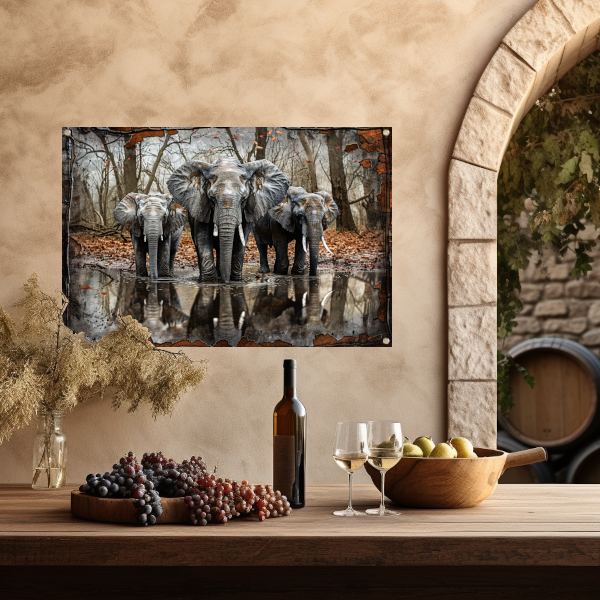 Olifanten met Waterreflectie in Boslandschap tuinposter