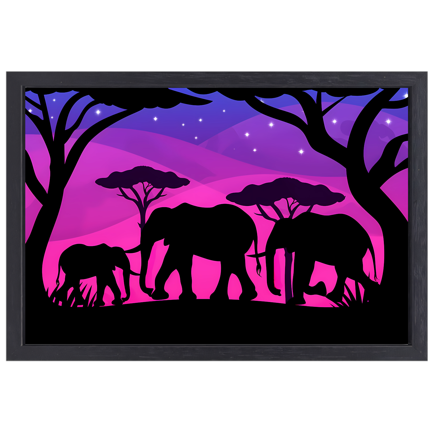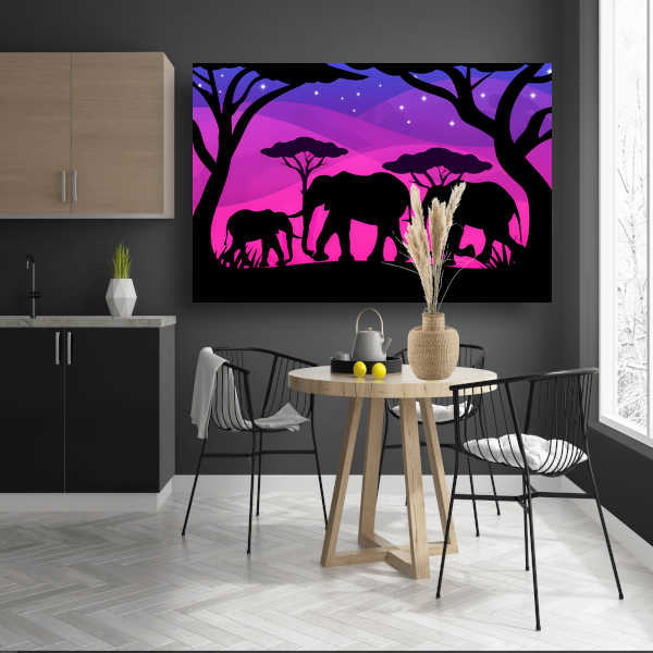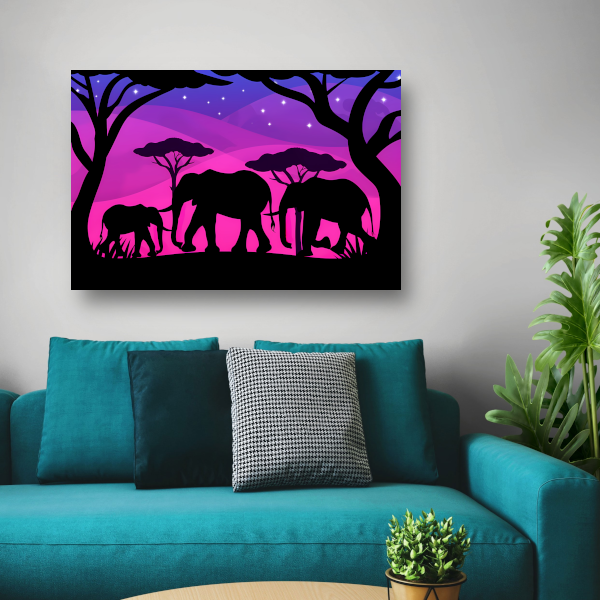 Olifanten silhouettes savanne zonsondergang canvas met baklijst