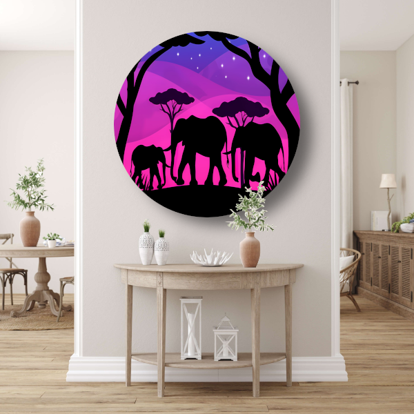 Olifanten silhouettes savanne zonsondergang forex muurcirkel