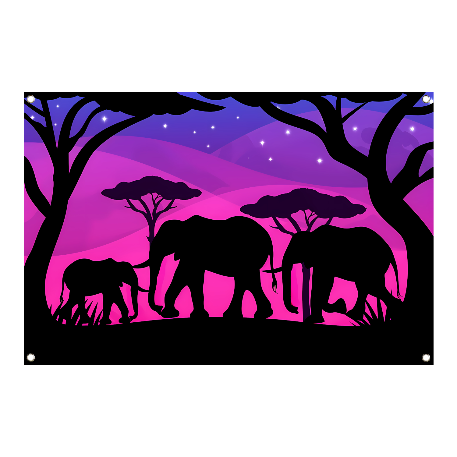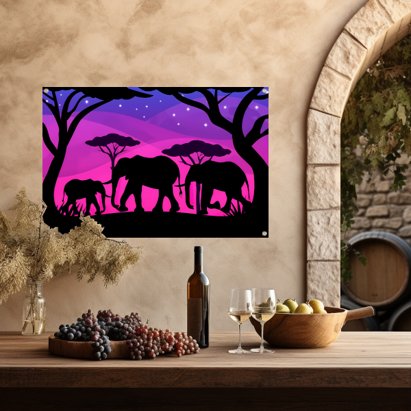 Olifanten silhouettes savanne zonsondergang tuinposter