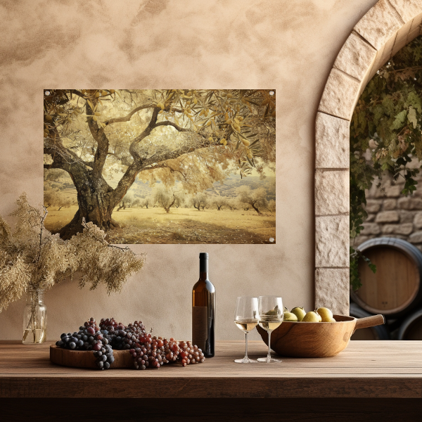 Onze tuinposter is niet alleen een visueel spektakel, maar ook een geweldige manier om een unieke sfeer te creëren. Of je nu een rustige plek in je tuin wilt inrichten of een inspirerende achtergrond voor je balkon zoekt, deze tuinposter zal zeker een aanvulling zijn op jouw buitenruimte. De zachte kleuren en levendige details van de olijfboom maken het perfect voor het creëren van een ontspannende en stijlvolle ambiance.