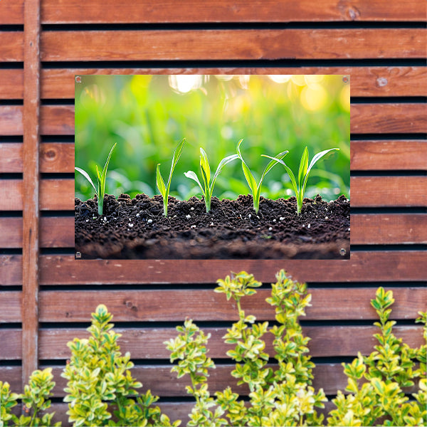 Ontkiemende spruiten in voedzame aarde tuinposter