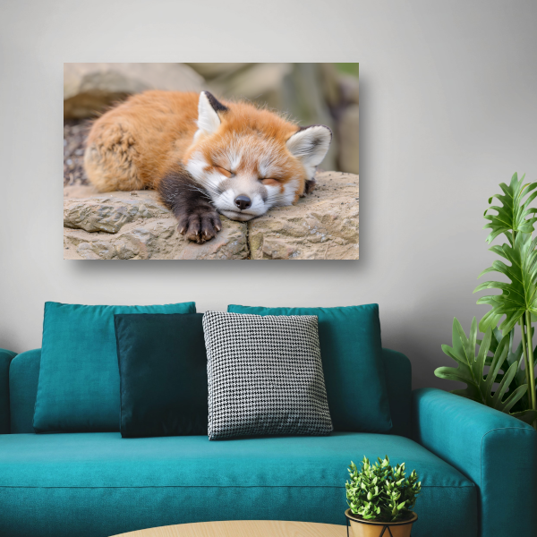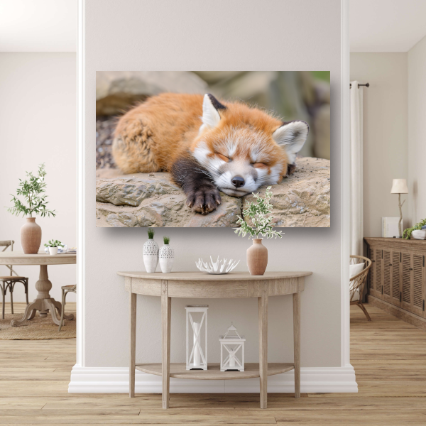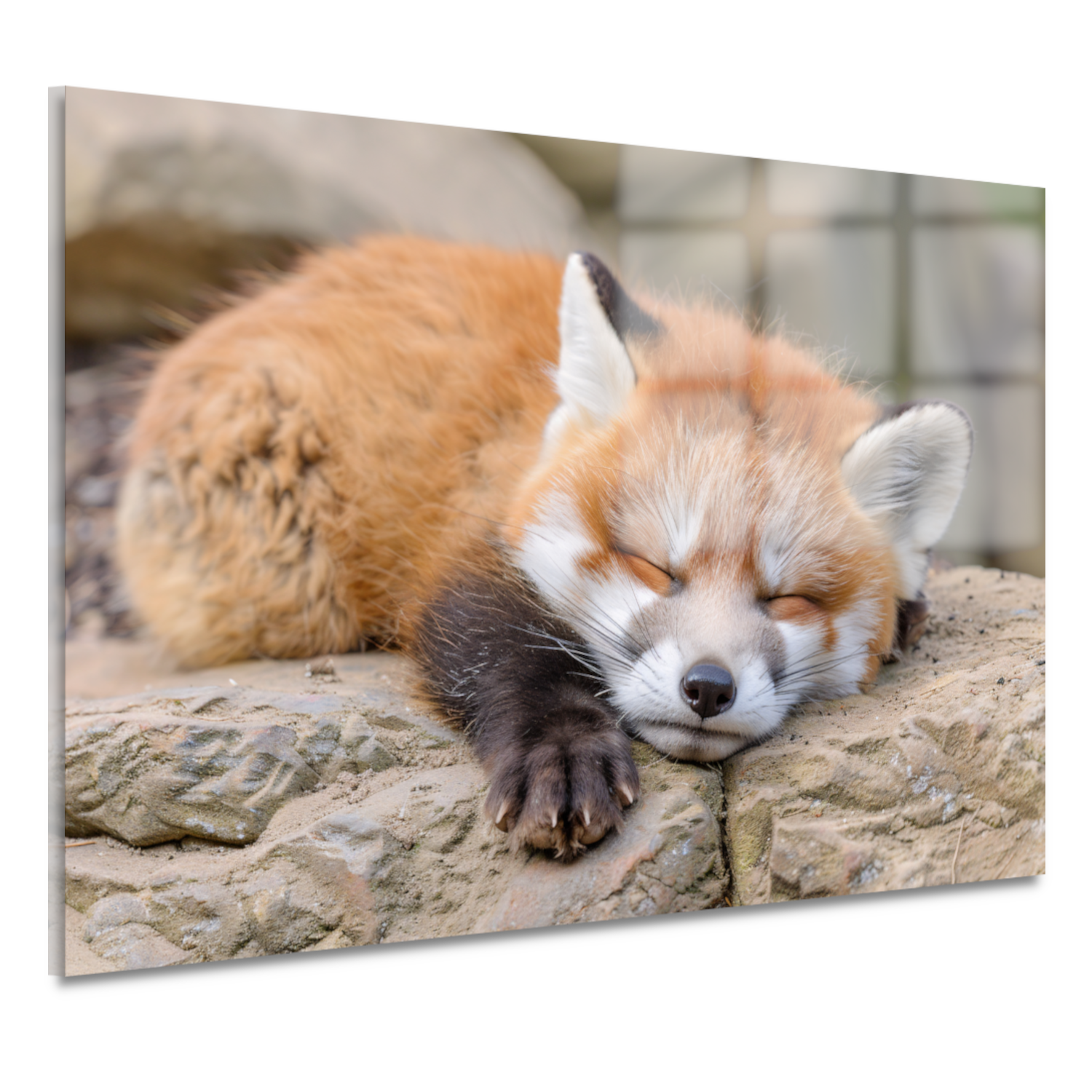 Voeg een vleugje natuurlijke schoonheid toe aan je interieur met dit prachtige acrylglas kunstwerk van de Ontspannende Rode Vos in zijn Natuurlijke Habitat.