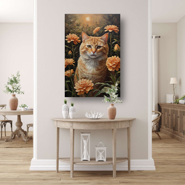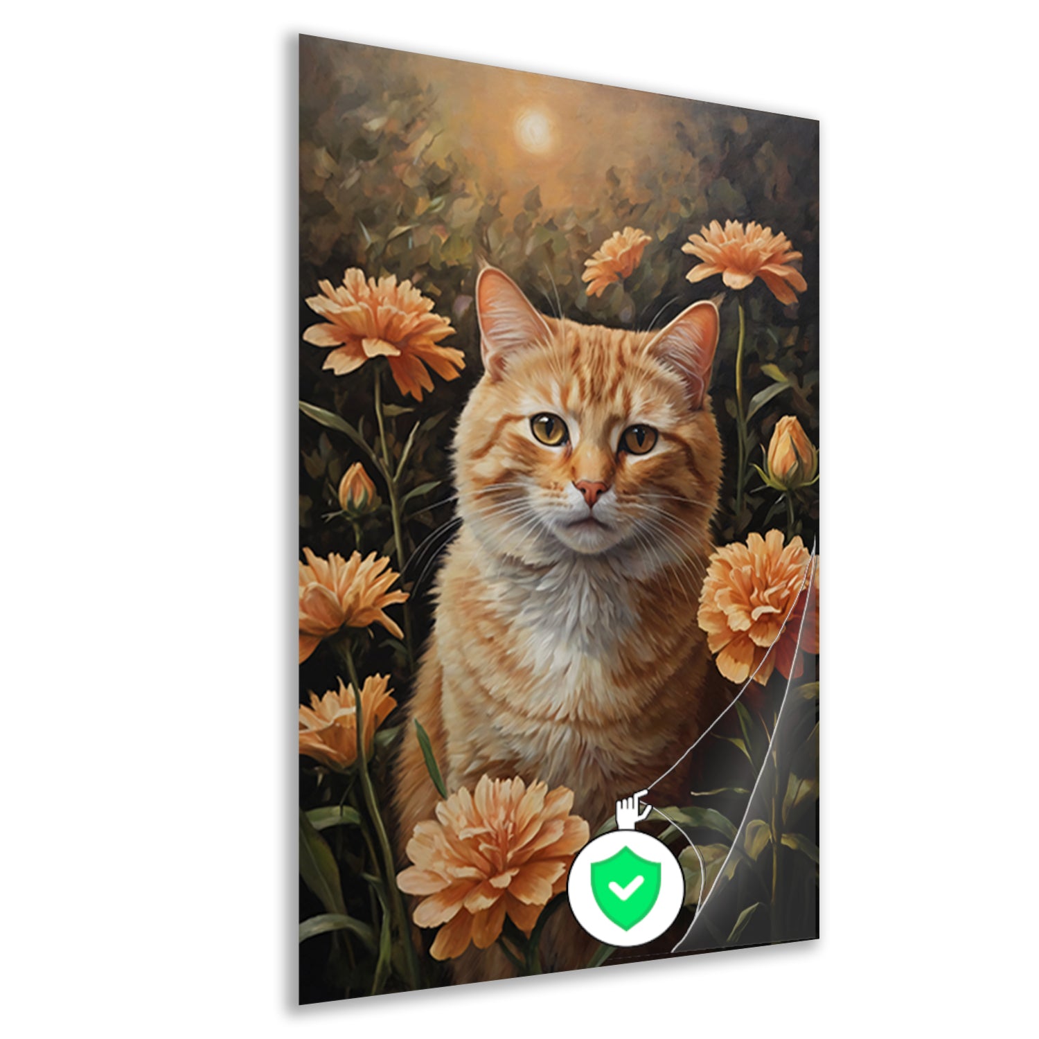 Oranje Kat tussen Bloeiende Goudsbloemen poster