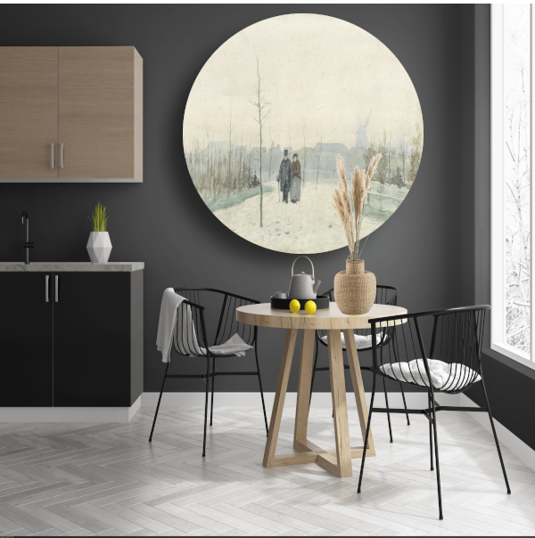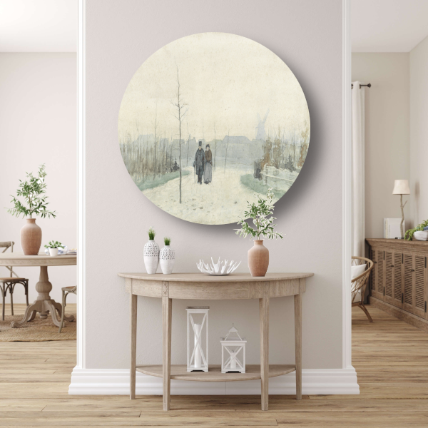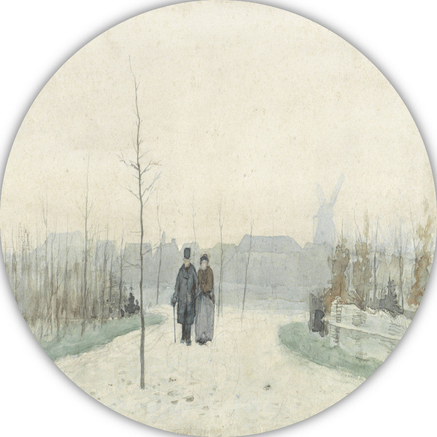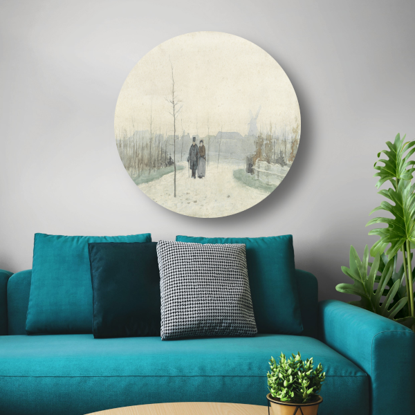 Oud paar in een nieuw aangelegd park - Anton Mauve aluminium muurcirkel