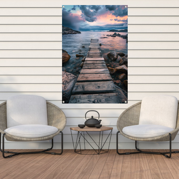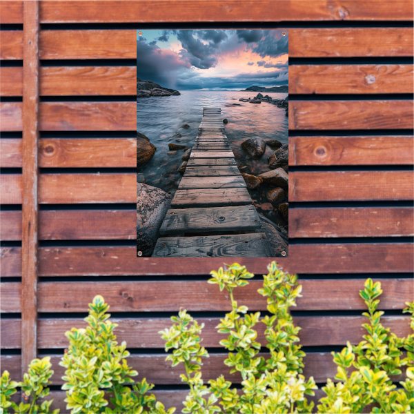 Onze tuinposters zijn UV- en waterbestendig, waardoor ze bestand zijn tegen zon en regen en hun kleuren langdurig mooi blijven. Alle tuinposters van De Muurdecoratie zijn voorzien van ringen in de hoeken, zodat je ze eenvoudig kunt ophangen. Let op: onze tuinposters worden niet met ophangsysteem geleverd.