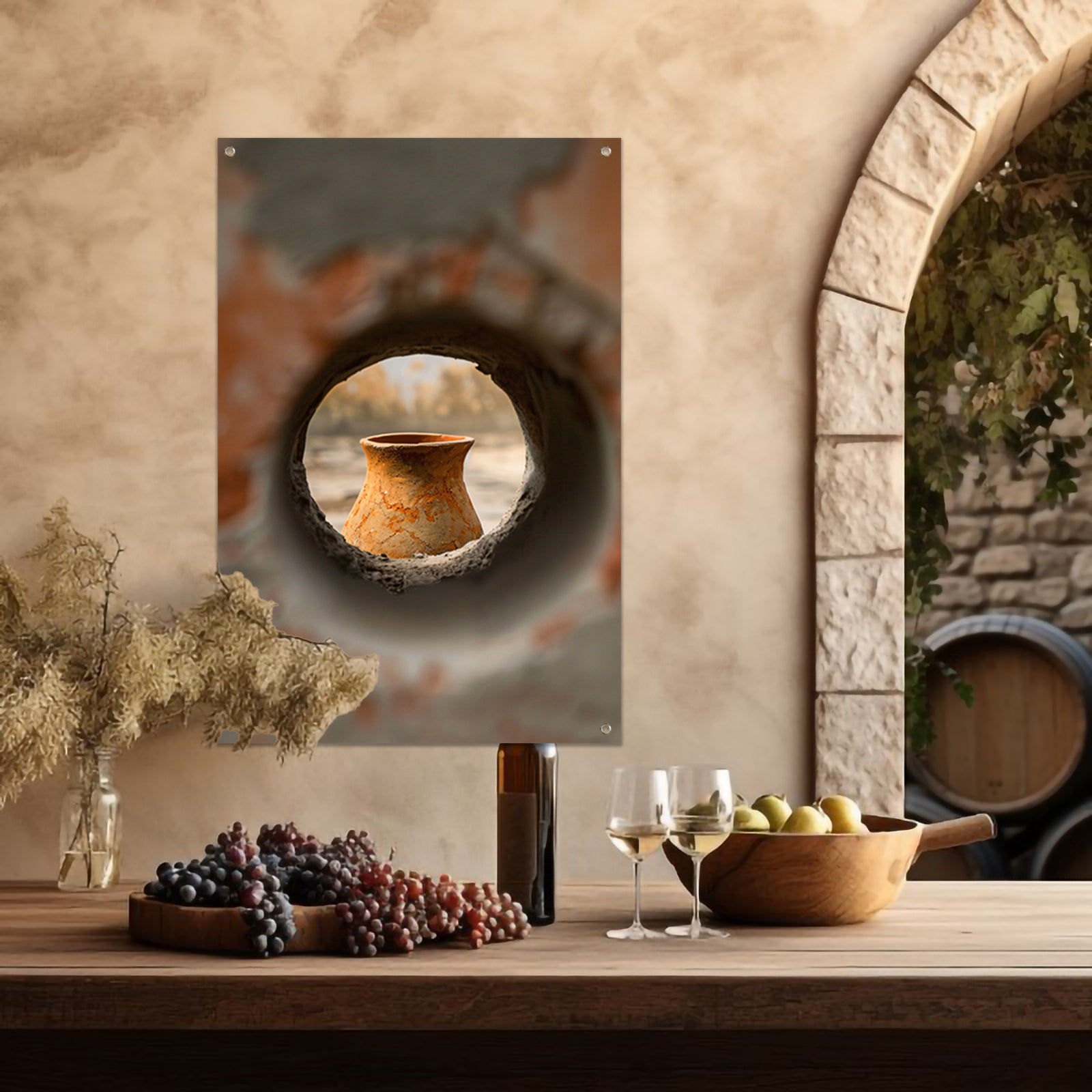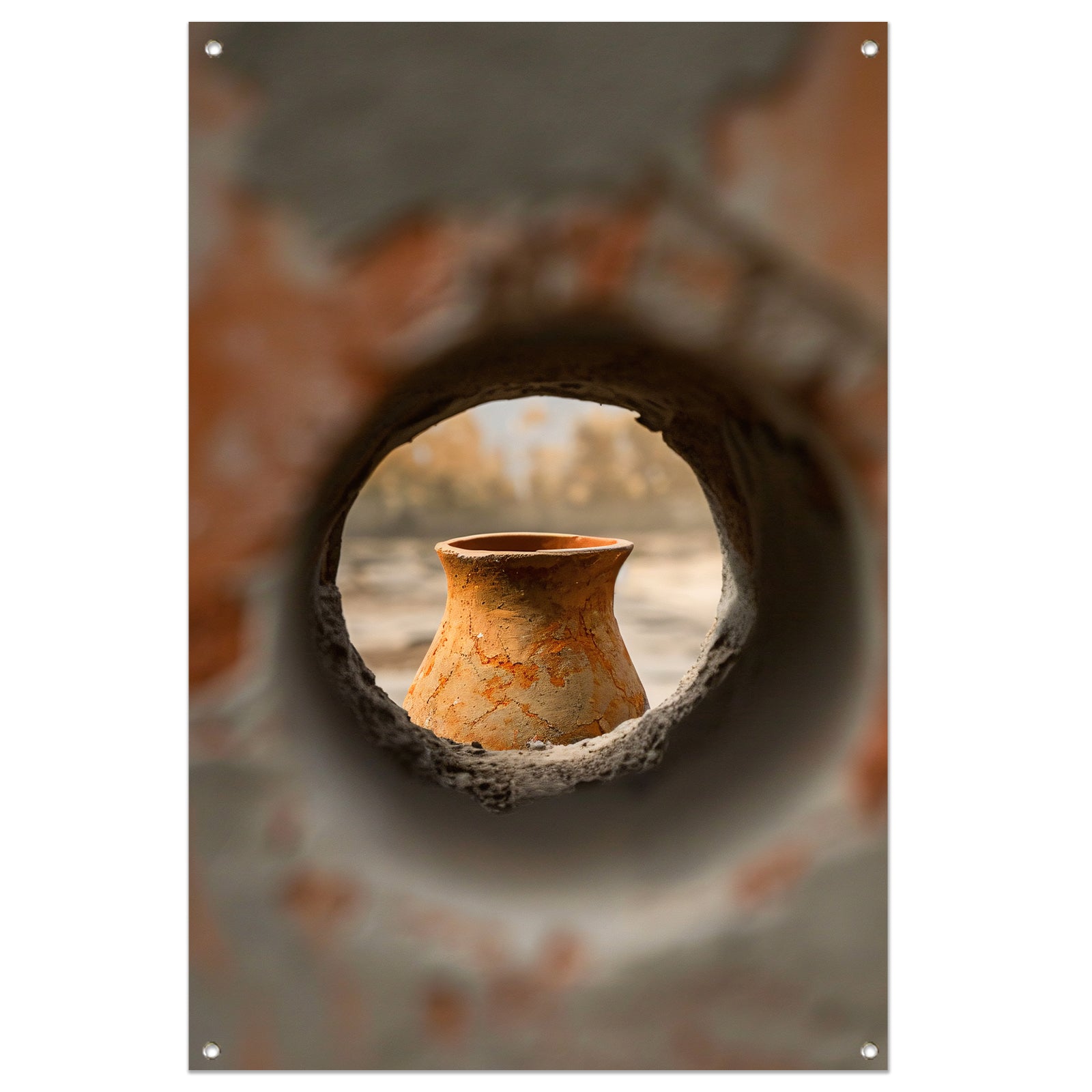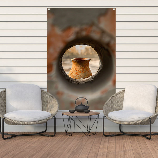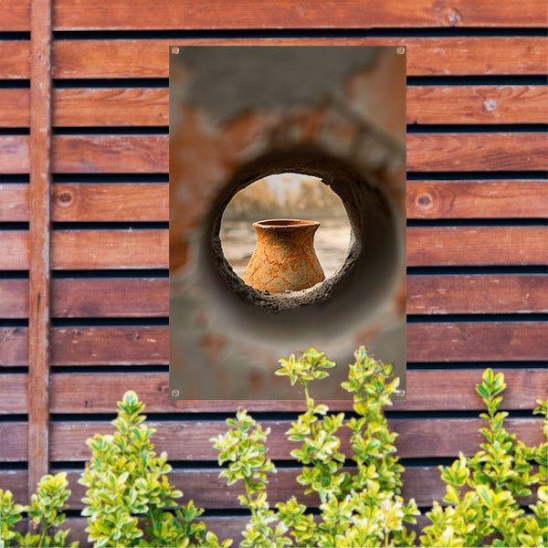Oude vaas in stenen raam tuinposter