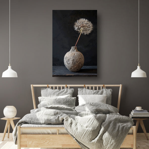 Oude vaas met delicate paardenbloem canvas met baklijst