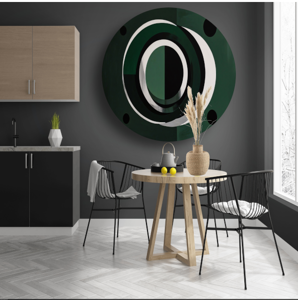 Overlappende Cirkels in Zwart, Wit en Groen forex muurcirkel