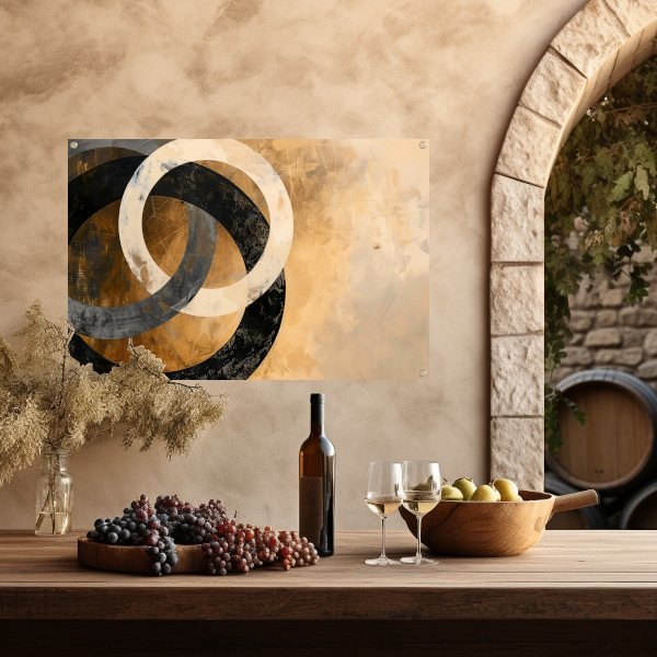 Overlappende sepia cirkels op beige achtergrond tuinposter
