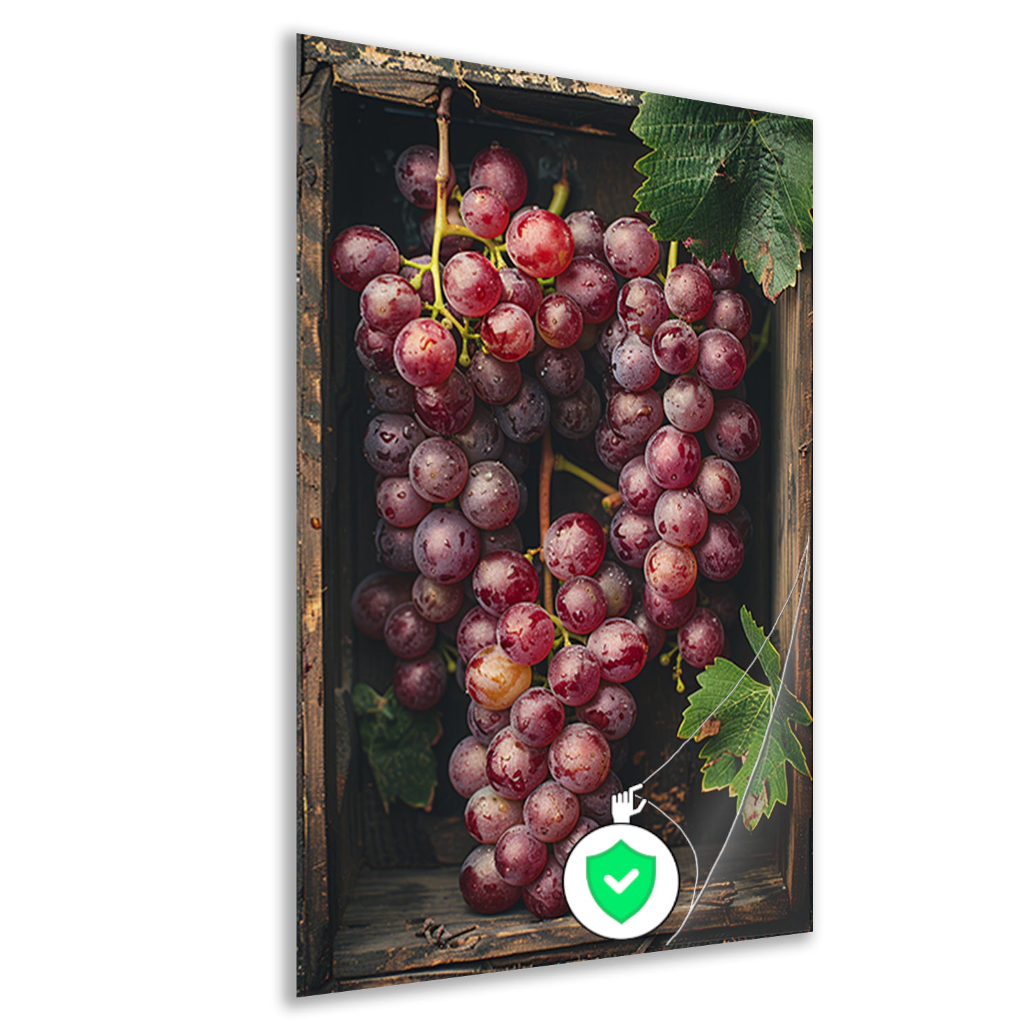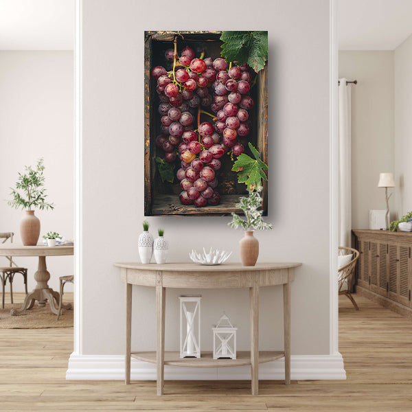 Overvloedige oogst van rode druiven in houten kist poster