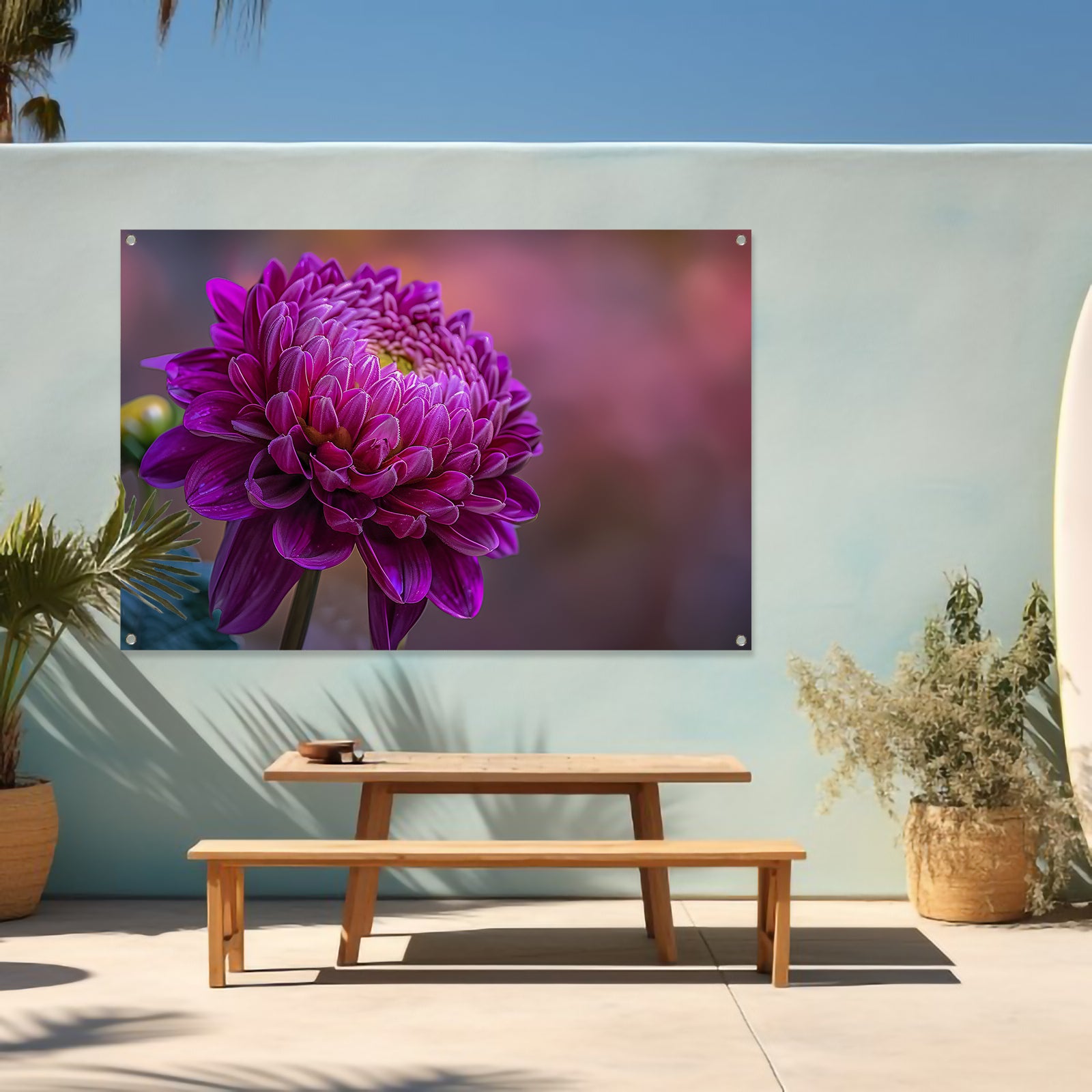 Onze tuinposters zijn UV- en waterbestendig, waardoor ze bestand zijn tegen zon en regen en hun kleuren langdurig mooi blijven. Alle tuinposters van De Muurdecoratie zijn voorzien van ringen in de hoeken, zodat je ze eenvoudig kunt ophangen. Let op: onze tuinposters worden niet met ophangsysteem geleverd.