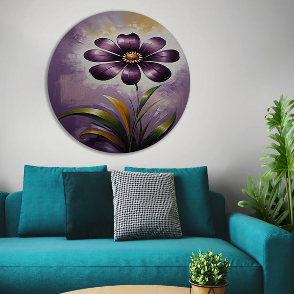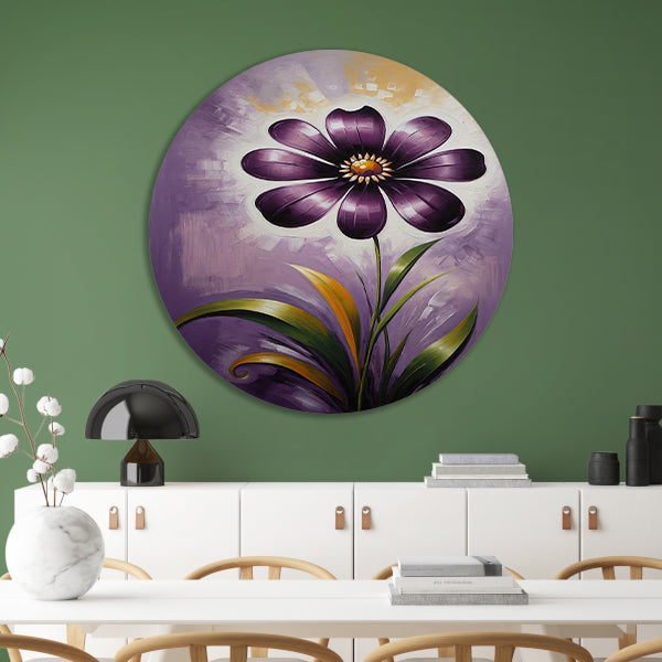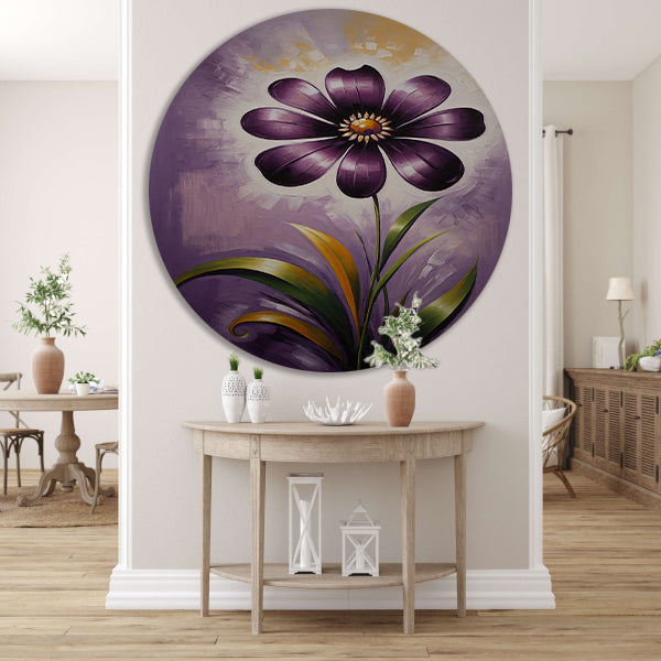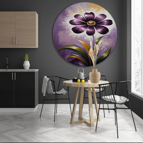 Paarse Bloem Impressie op Moderne Achtergrond aluminium muurcirkel