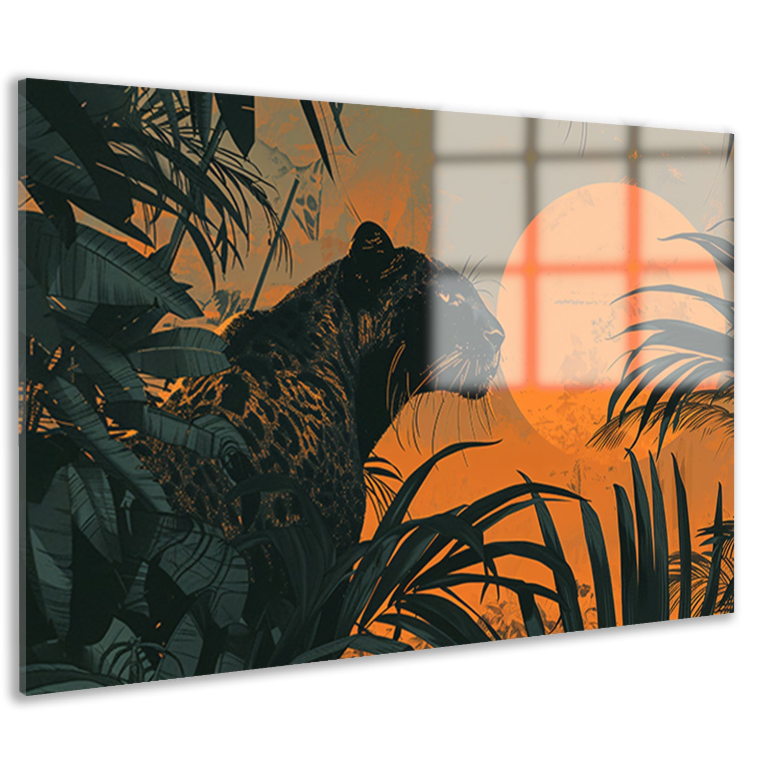 Panter in jungle bij zonsondergang schilderij acrylglas