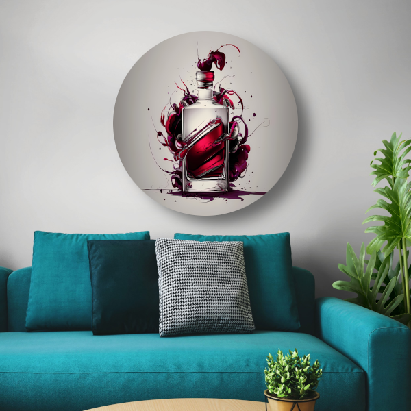 Parfumfles met dynamische kleurexplosie aluminium muurcirkel