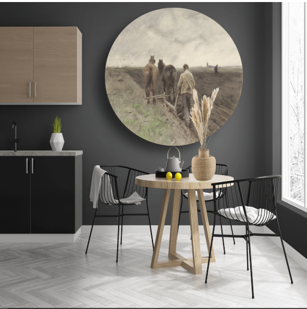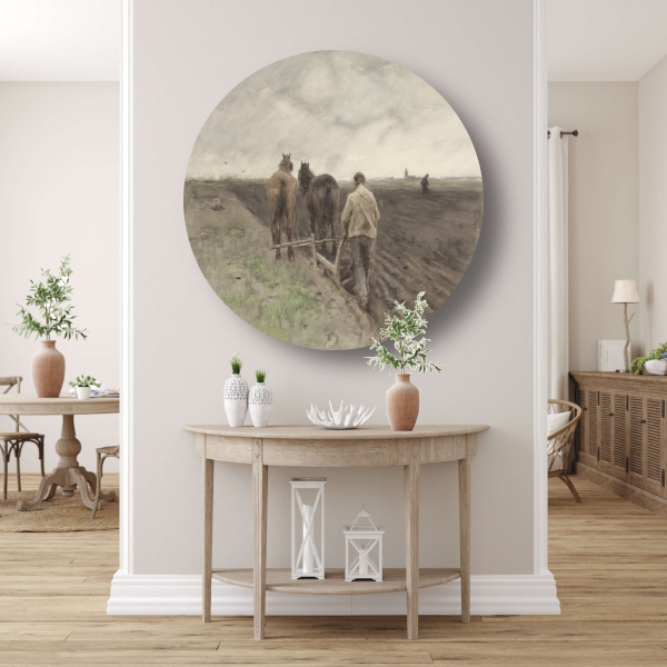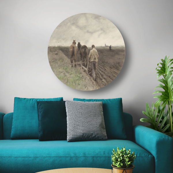 Ploegende boer - Anton Mauve aluminium muurcirkel