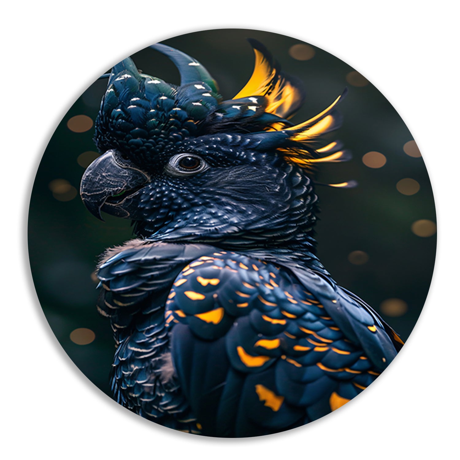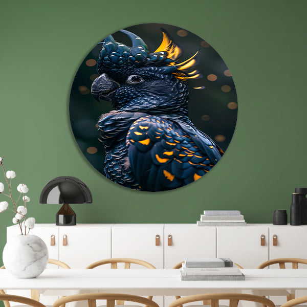 Portret van een Blauwe Papegaai met Geel aluminium muurcirkel