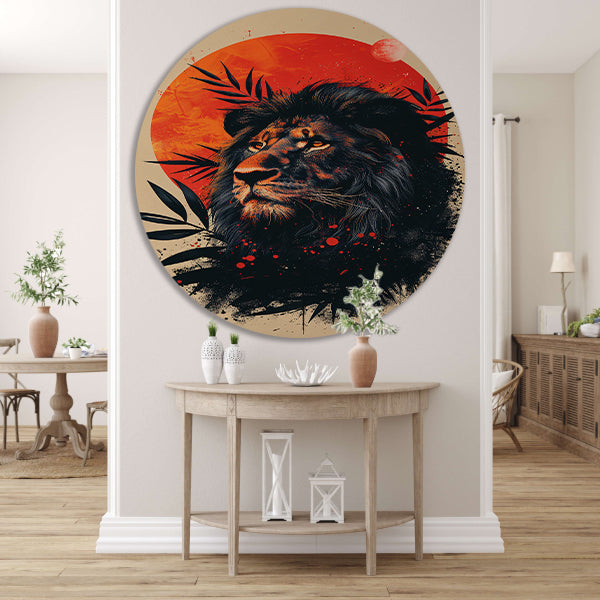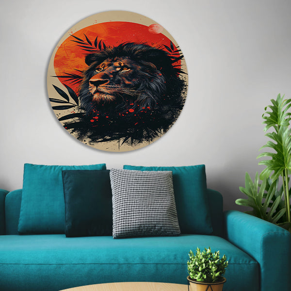 Portret van een leeuw in de schemering aluminium muurcirkel