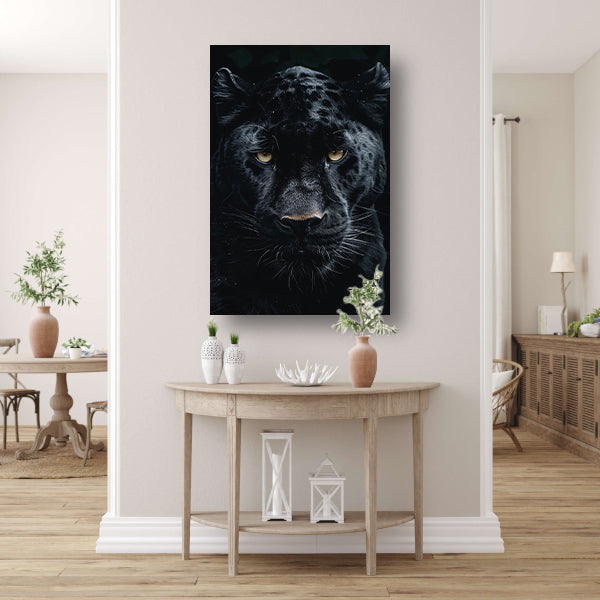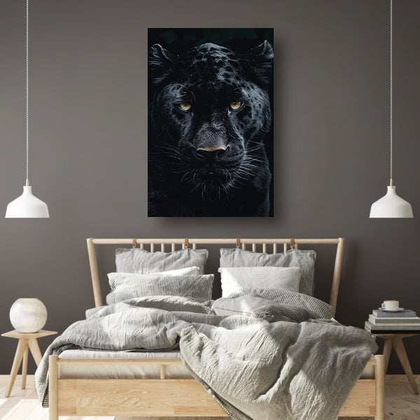 Portret van een zwarte panter met gele ogen canvas