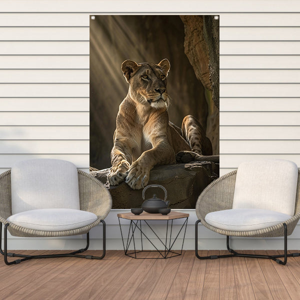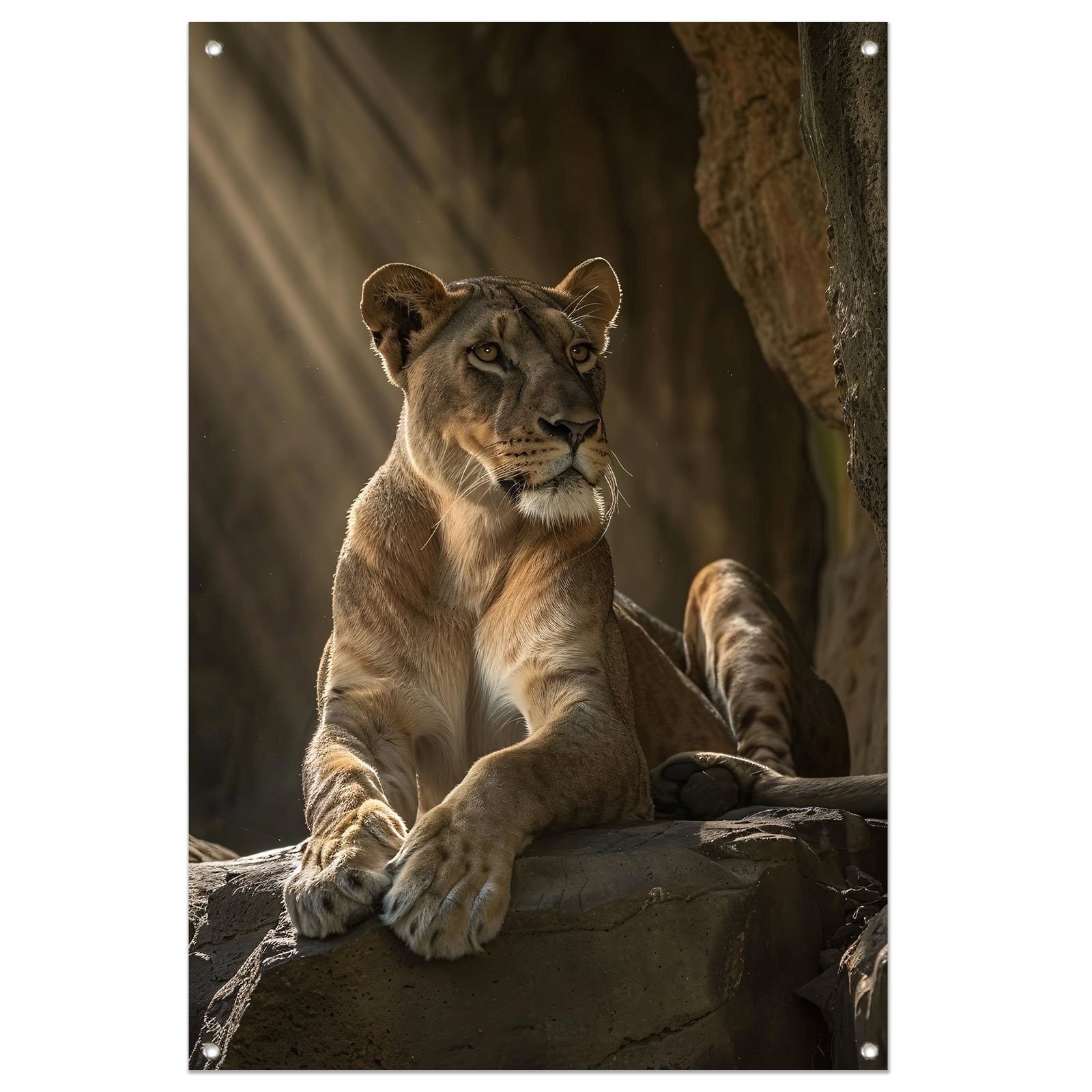 Onze tuinposters zijn UV- en waterbestendig, waardoor ze bestand zijn tegen zon en regen en hun kleuren langdurig mooi blijven. Alle tuinposters van De Muurdecoratie zijn voorzien van ringen in de hoeken, zodat je ze eenvoudig kunt ophangen. Let op: onze tuinposters worden niet met ophangsysteem geleverd.