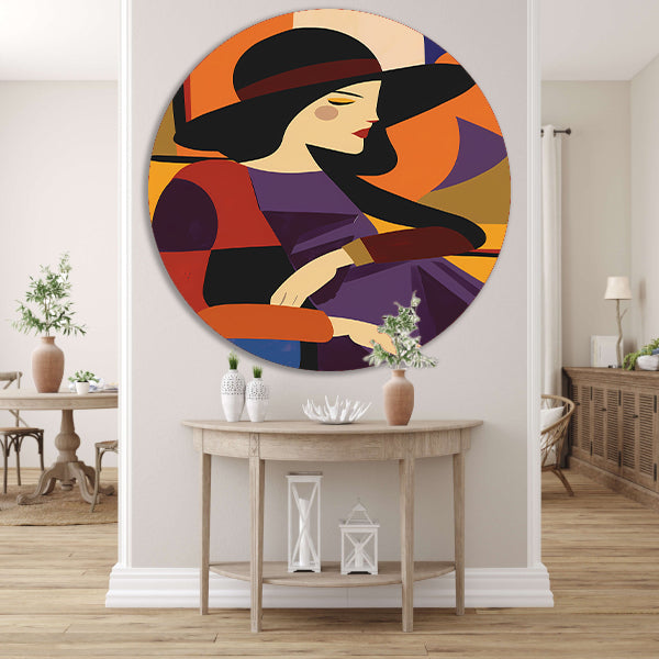 Portret van vrouw in geometrische stijl aluminium muurcirkel