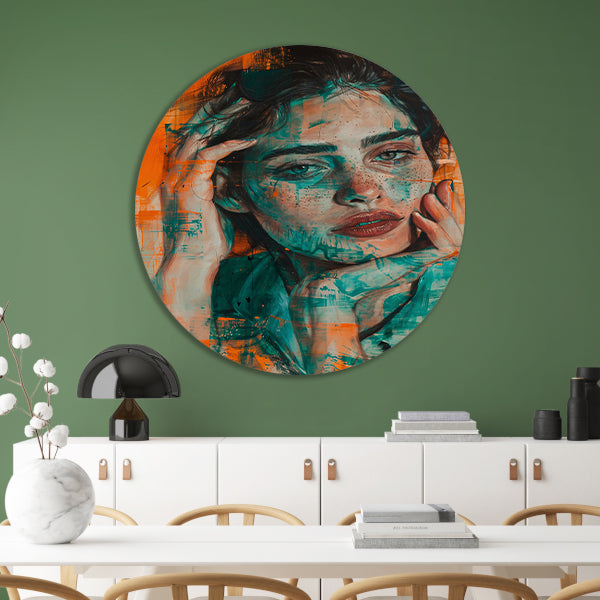 Prachtig aquarel schilderij van vrouwelijk portret aluminium muurcirkel