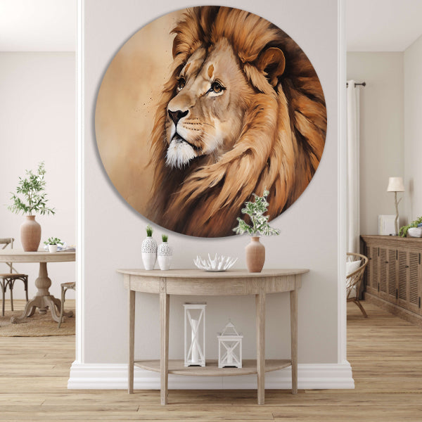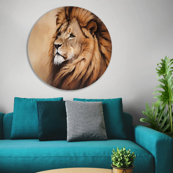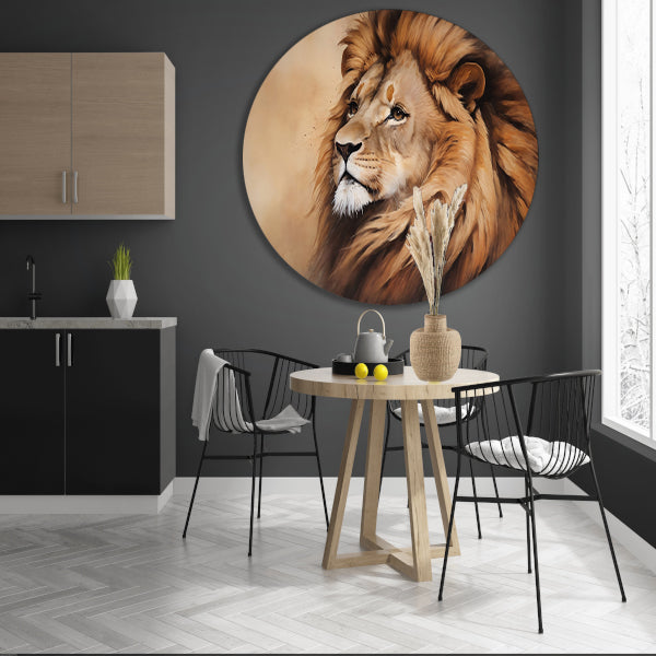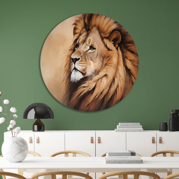 Prachtig realistisch portret van een leeuw aluminium muurcirkel