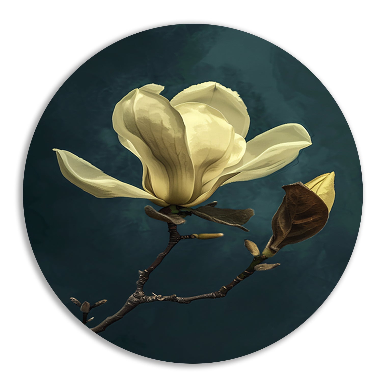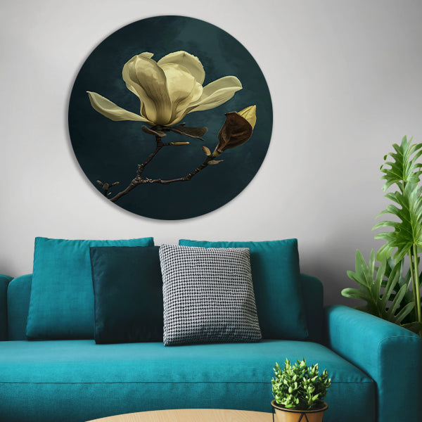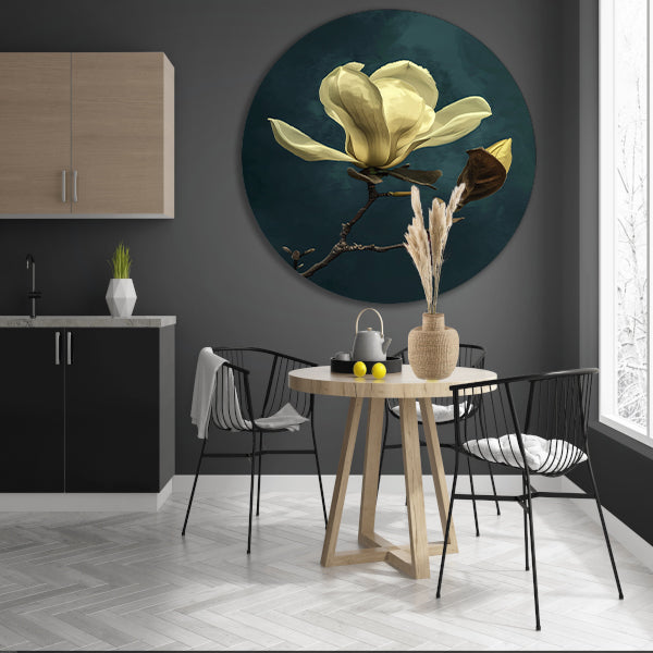 Kies voor dit prachtige realistische schilderij van een bloem op aluminium muurcirkel en geef uw interieur een stijlvolle en moderne uitstraling!