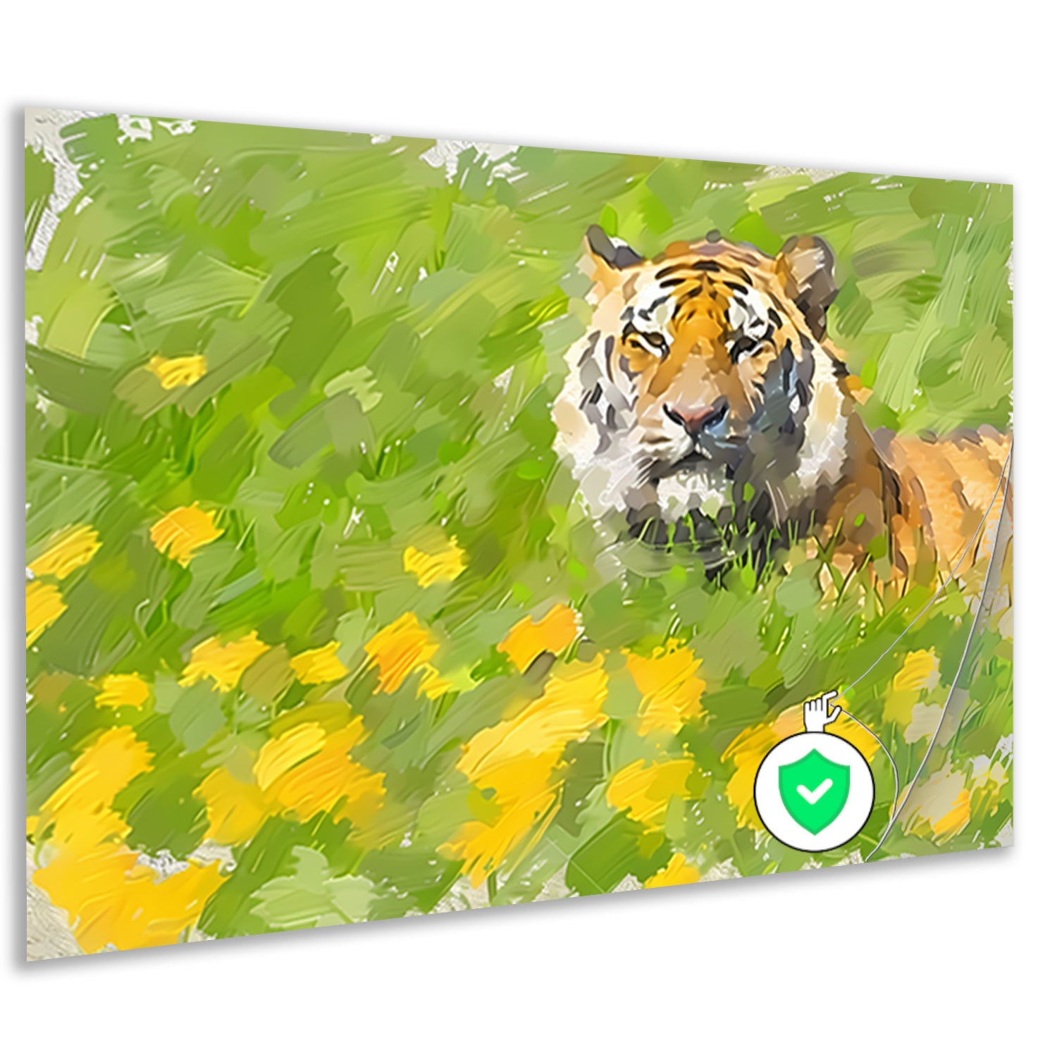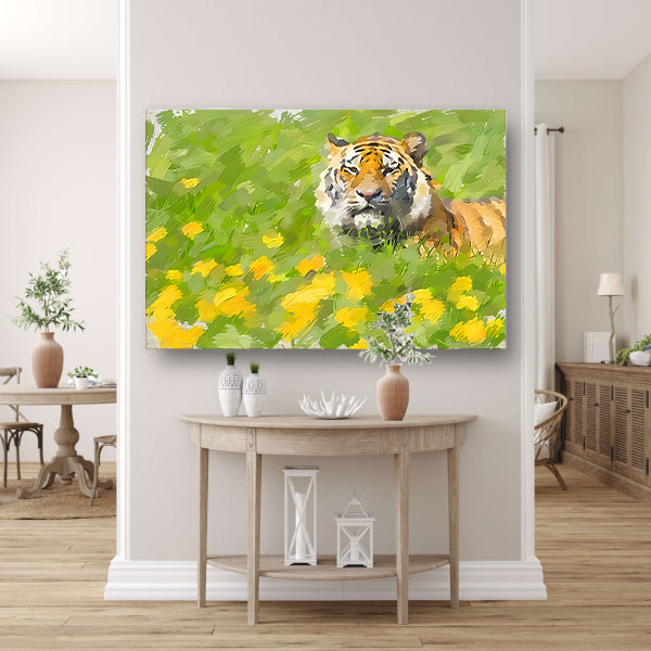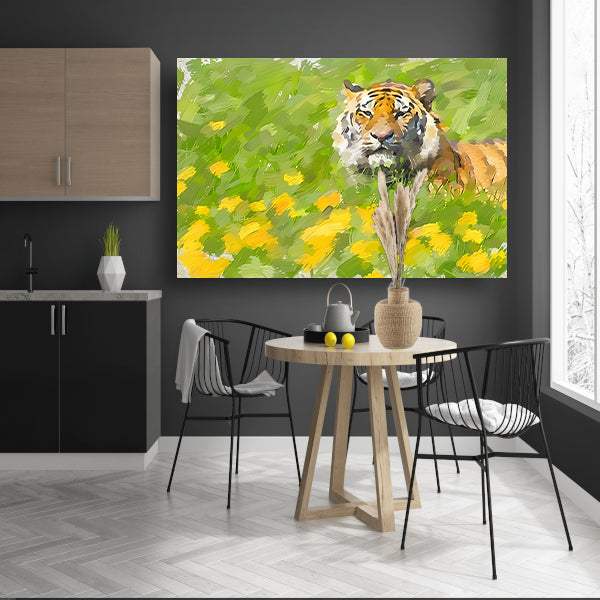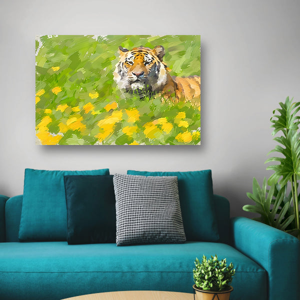 Prachtig schilderij van tijger in bloemenveld poster