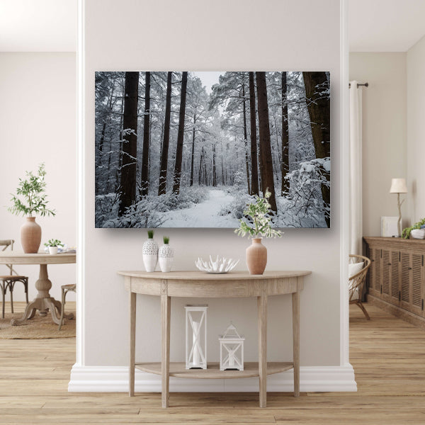 Prachtig winters boslandschap met sneeuw canvas met baklijst