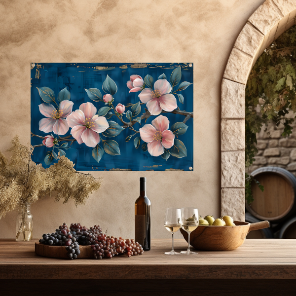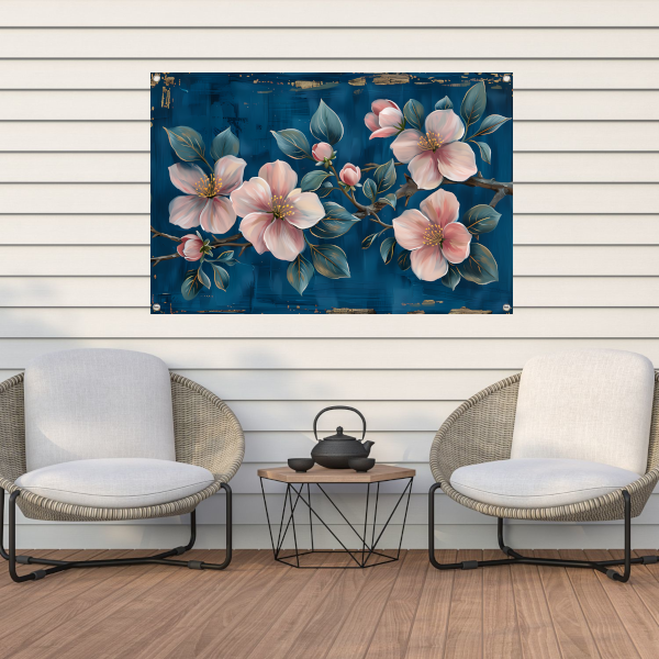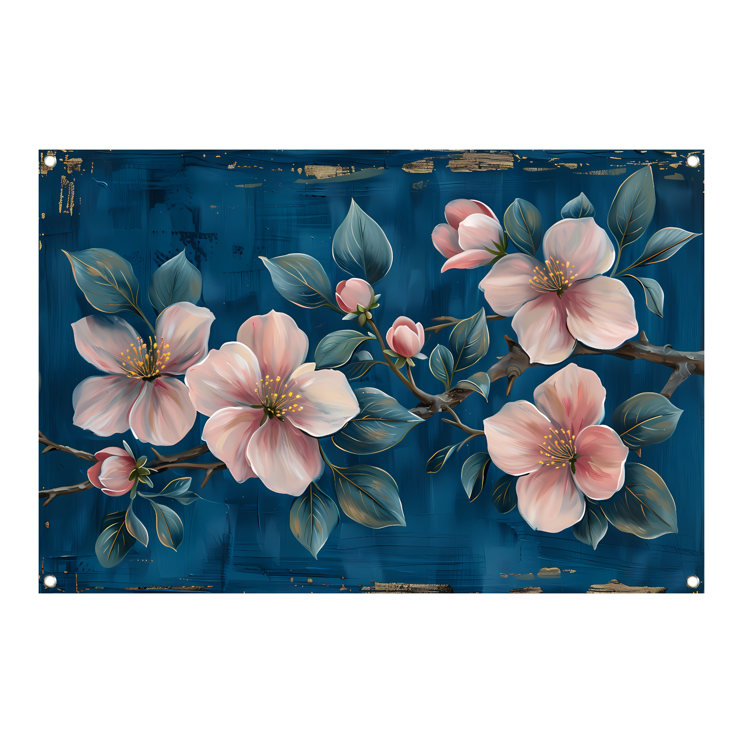 Prachtige bloemen op blauwe achtergrond tuinposter