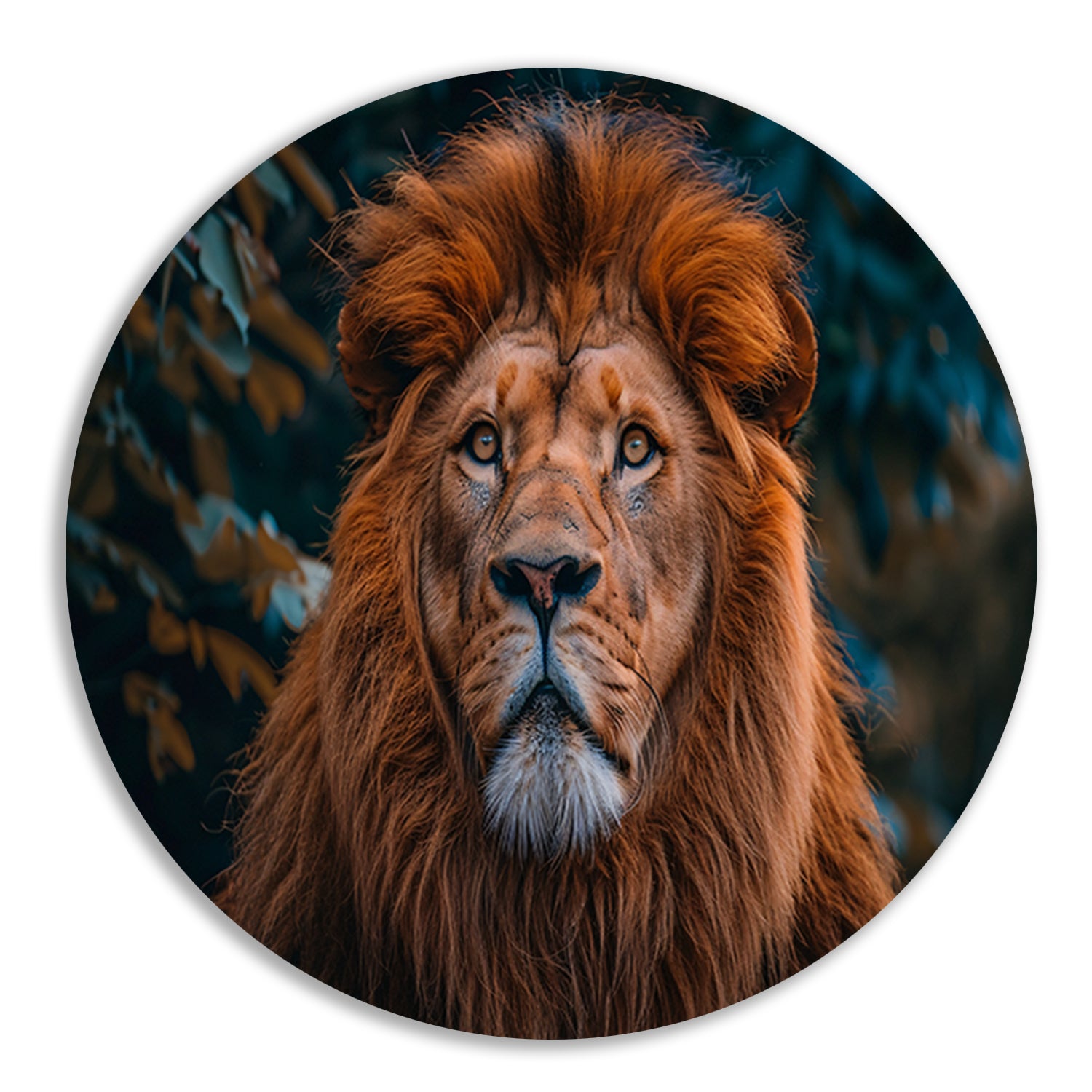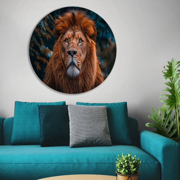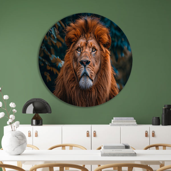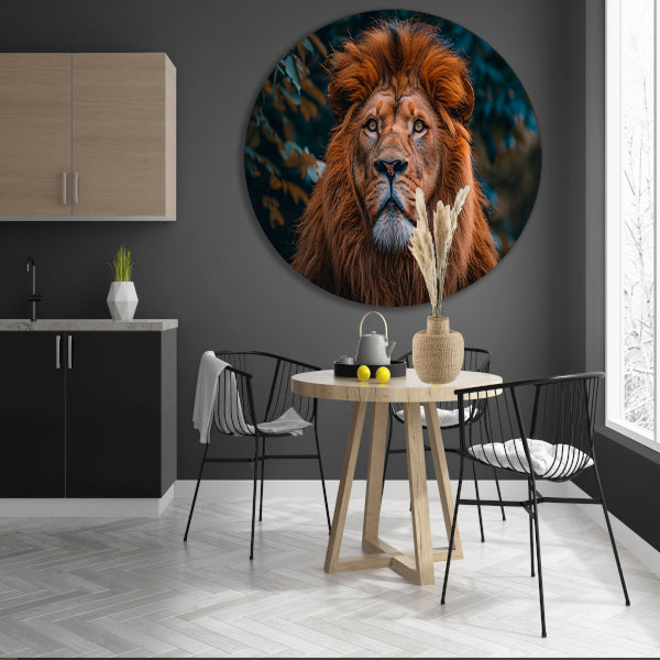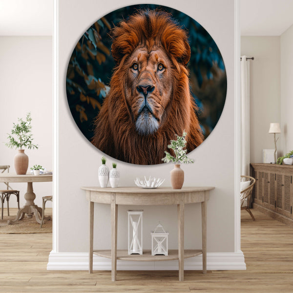 Prachtige portret van een leeuw met bladeren forex muurcirkel