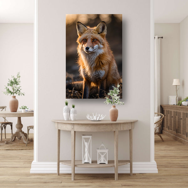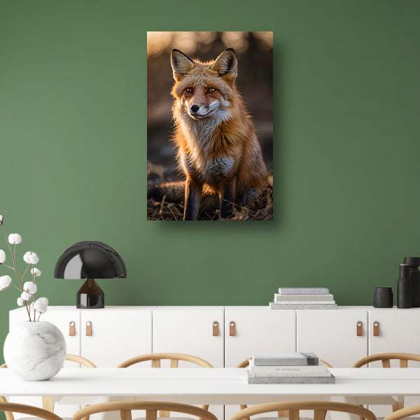 Prachtige vos tijdens zonsondergang in natuur canvas