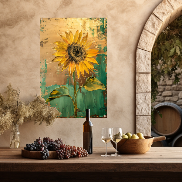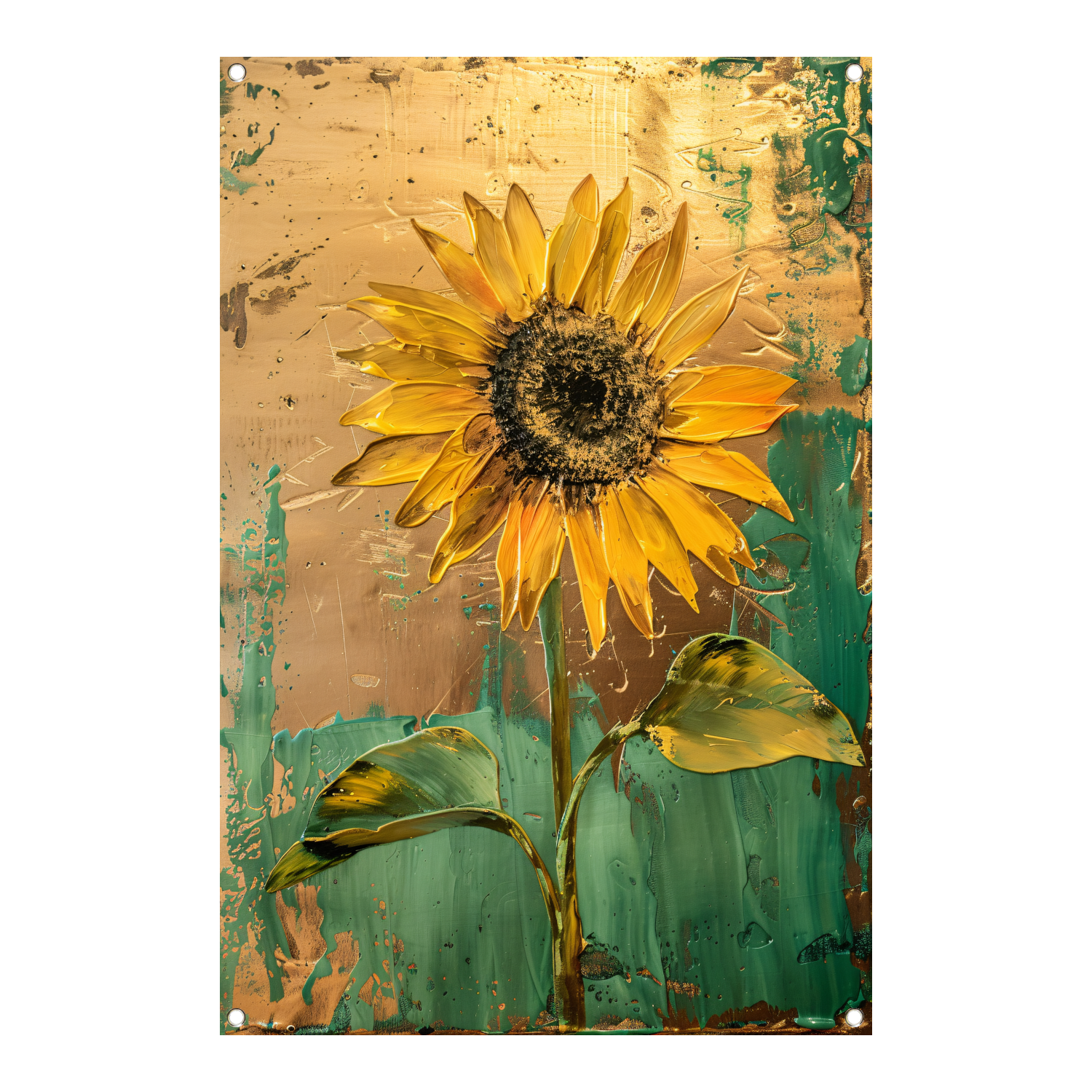 Prachtige zonnebloem in gouden en groene tinten tuinposter