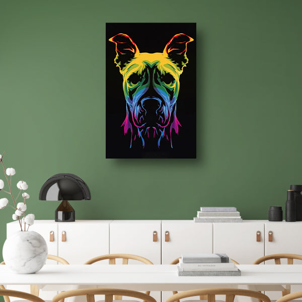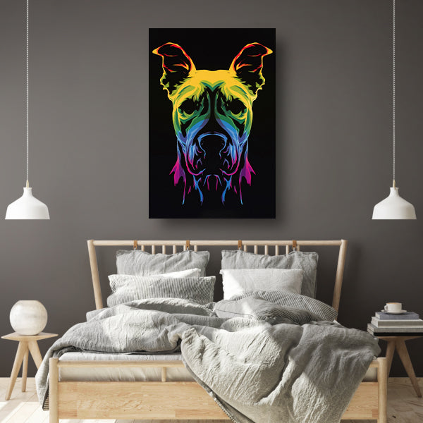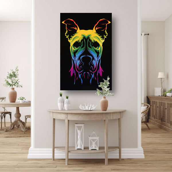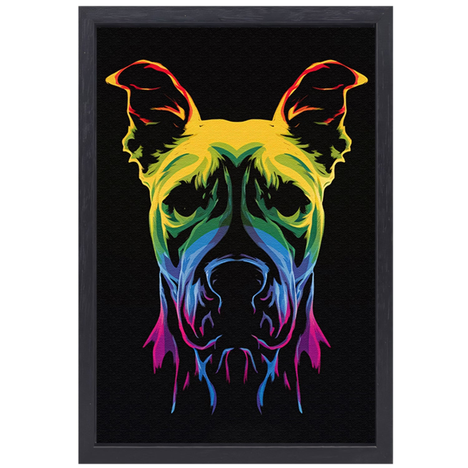 Psychedelische kleurrijke afbeelding van een hond canvas met baklijst