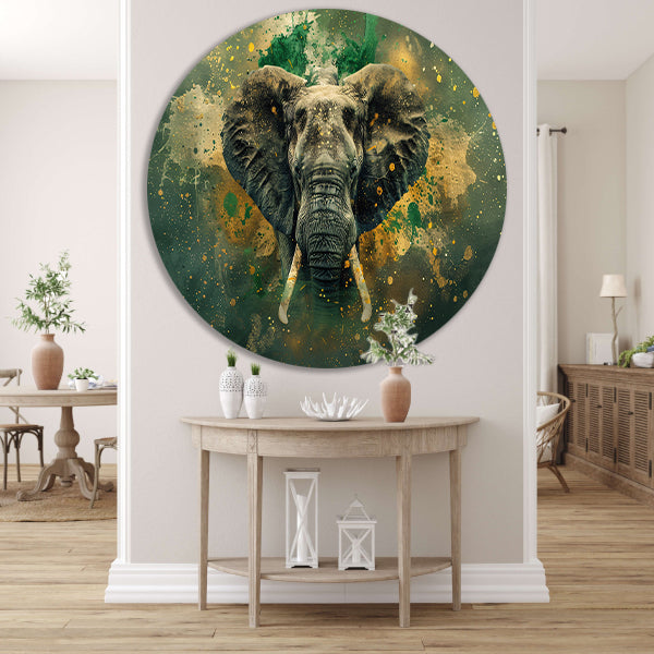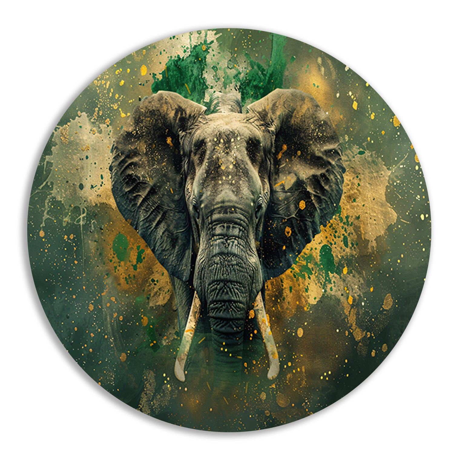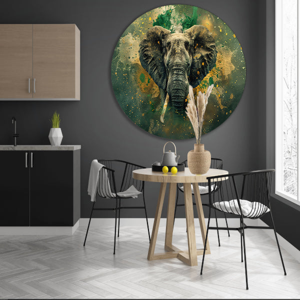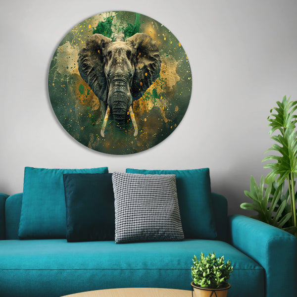 Realistisch olifantportret in dynamische kleuren aluminium muurcirkel