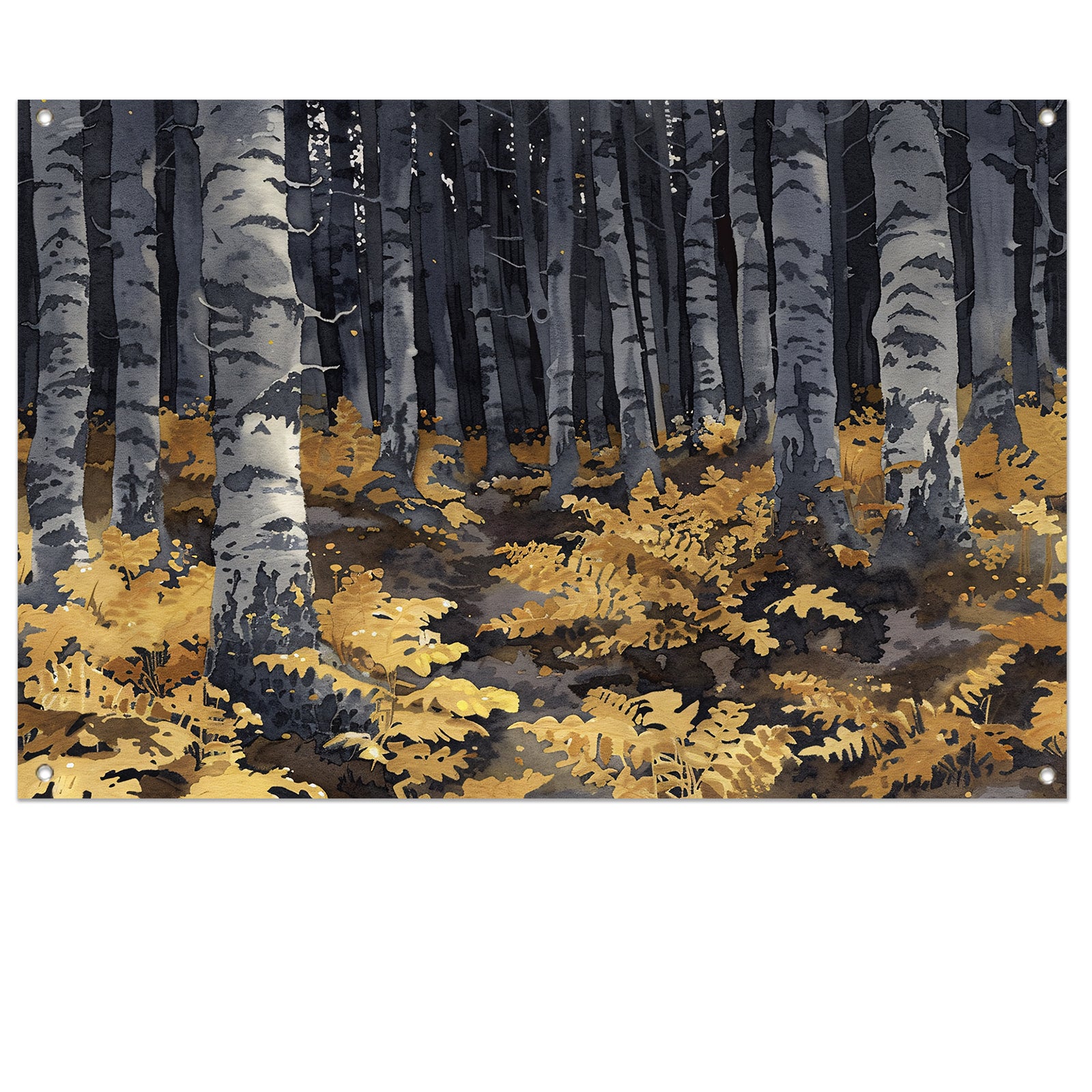 Realistisch schilderij van bomen en varens tuinposter