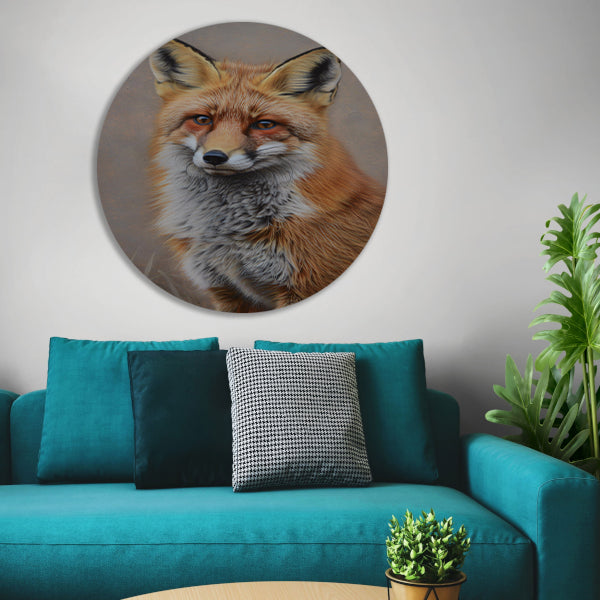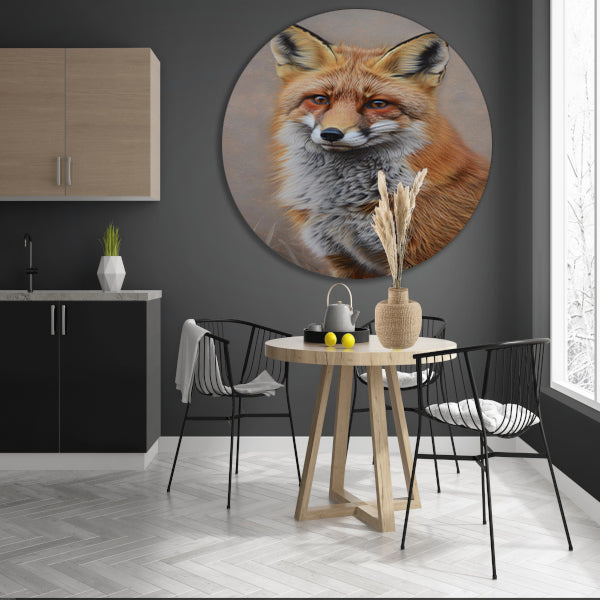 Breng de natuur naar binnen met deze prachtige muurcirkel van een realistisch geschilderde vos en geniet dagelijks van de warme en rustgevende sfeer die dit kunstwerk met zich meebrengt.