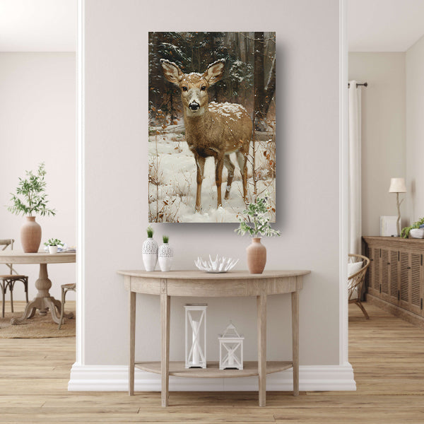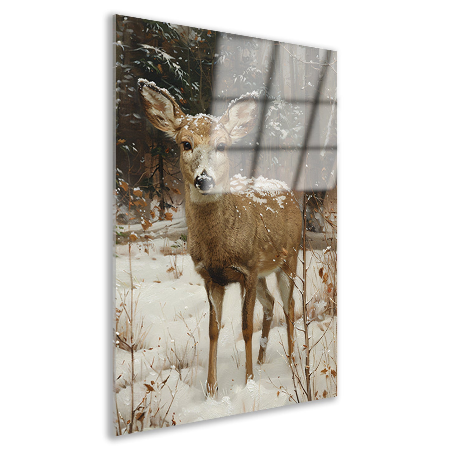 Realistisch schilderij van hert in besneeuwd bos acrylglas