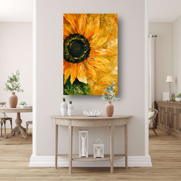 Realistisch schilderij van kleurrijke zonnebloem acrylglas
