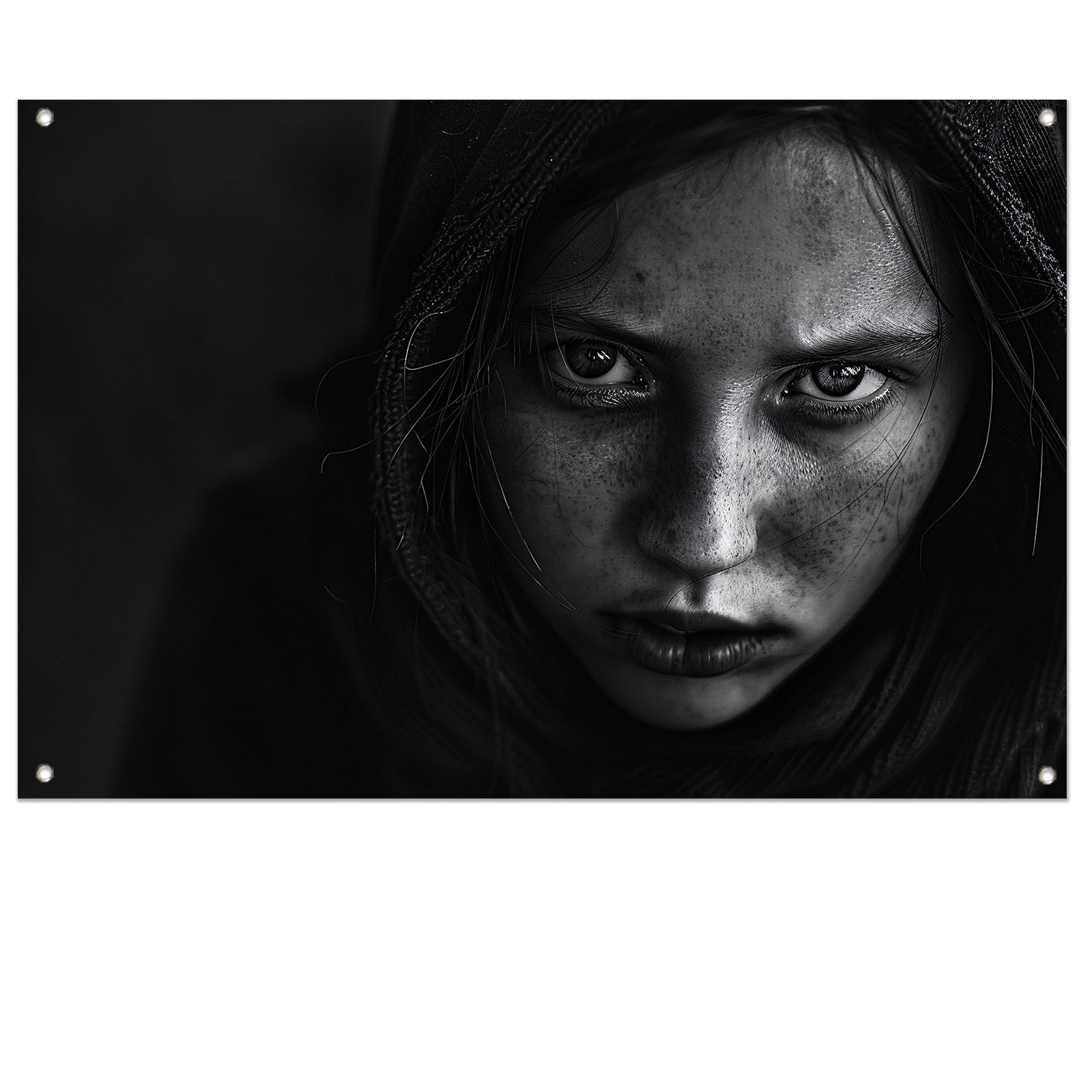 Realistisch zwart-wit portret met intense blik tuinposter