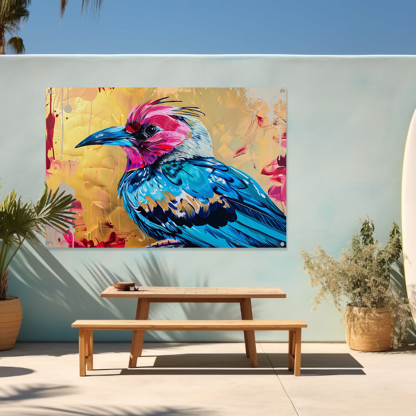 Realistische kleurrijke abstracte vogelkunst tuinposter